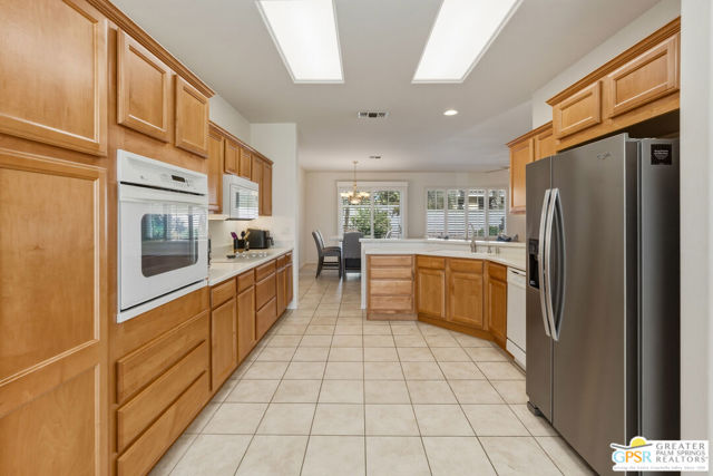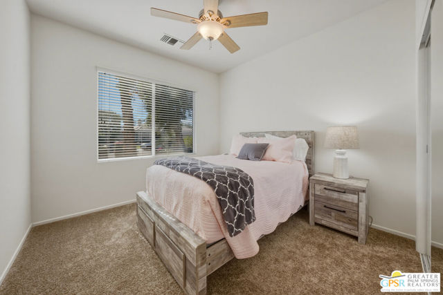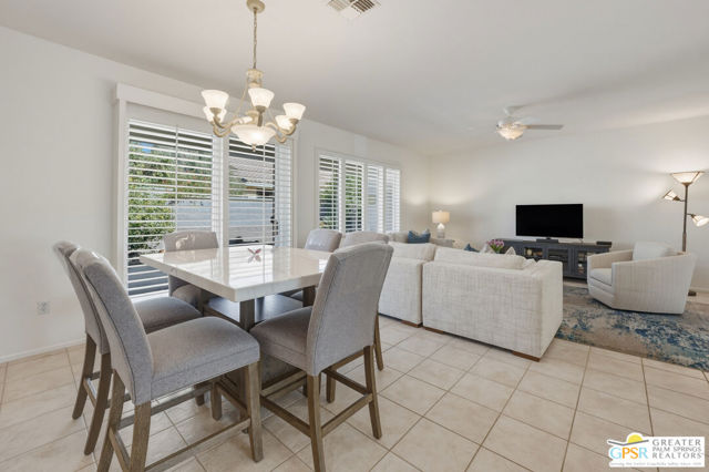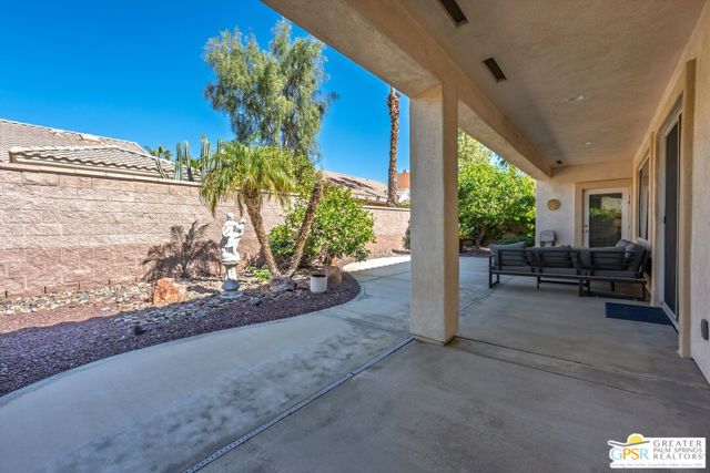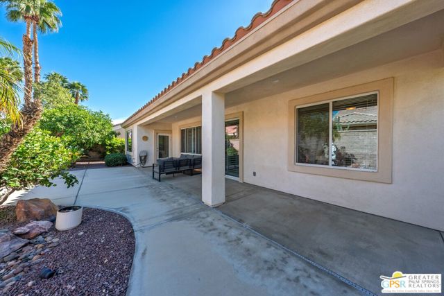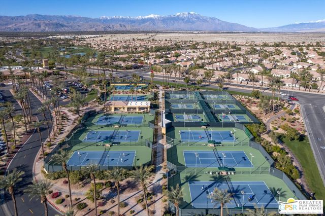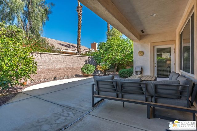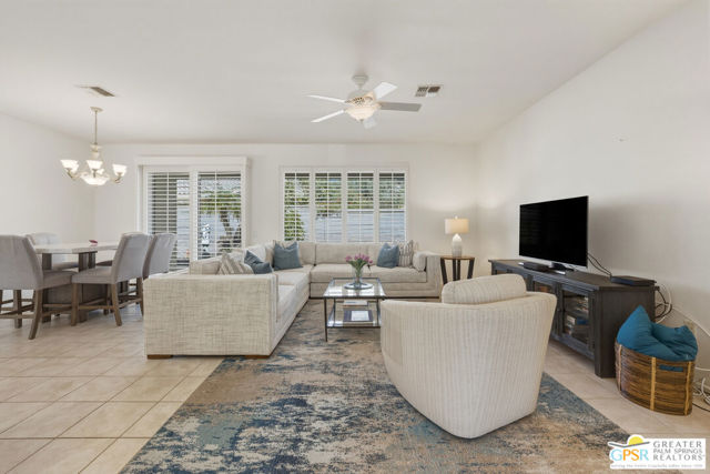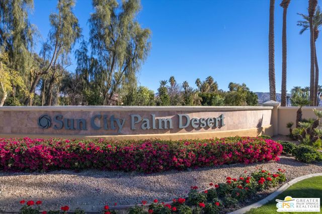 Welcome to Sun City Palm Desert where resort-style living is simply part of everyday life. Behind the 24-hour guard-gated entrance, you'll discover an extraordinary array of amenities designed for both recreation and relaxation. Enjoy 20 pickleball and tennis courts, two beautifully maintained 18-hole golf courses with a driving range, five heated swimming pools, and three stunning clubhouses that serve as vibrant social hubs. Residents also enjoy billiards, a grand ballroom, two on-site restaurants, a martini and coffee bar, a theater, technology center, library, arts & crafts, two dog parks, and RV parking. With more than 80 clubs and interest groups, there's truly something for everyone whether your passion is fitness, creativity, learning, or simply connecting with neighbors. Ideally located near the Mountain View Clubhouse, this popular Montego model offers 2 bedrooms plus an office/den (or optional third bedroom) and a spacious two-car attached garage. A transom window above the entry door welcomes natural light, setting the tone for the home's bright, open great-room design. Tile flooring flows throughout the main living areas, while plush carpeting adds comfort in the bedrooms. White plantation shutters provide timeless style and privacy. The kitchen features warm maple cabinetry, Corian countertops, and a cheerful breakfast nook perfect for casual dining. The generous primary suite offers direct access to the backyard, a large walk-in closet, dual vanities, and a walk-in shower. Thoughtful separation between the primary and guest bedroom ensures privacy for both owners and visitors. Step outside to your private rear patio, surrounded by mature landscaping that creates a serene setting with no direct neighboring views. Whether enjoying morning coffee or relaxing under the covered patio in the evening, this outdoor space offers peaceful desert living at its finest. Experience a beautifully maintained home within a vibrant, amenity-rich community where every day truly feels like a vacation. Go to https://realestatephotographyandvideo.com/78254-Grape-Arbor-Ave.