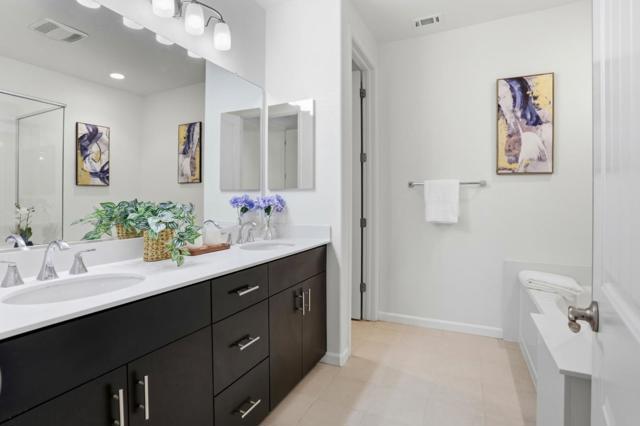 Immaculate and impeccably maintained, this Corner Unit townhome boasts a premium location in the desirable Traverse community . It features abundant large picture windows that offer lush open views and opulent soothing natural light. The open floor plan is decorated in contemporary neutral colors and quality tile floors throughout. The spacious and functional kitchen is equipped with ample dark Shaker cabinets, SS appliances, expansive granite counters, and a large central island with a convenient breakfast bar. Step out onto the intimate decks from both the living room, seamlessly blending indoor and outdoor living. The generous master suite includes a lavish ensuite bath with a large bath tub, dual sink vanity, and a spacious walk-in closet with elaborate organizers. The secluded main floor guest/in-law bedroom is adjacent to a full bath, providing privacy and convenience. Enjoy outdoor activities in the nearby parks including Augustus Rathbone Park and Delano Manongs Park. Convenient location: Short commute to the major high tech as Nvidia, Google, Supermicro & Apple and shoppings Great Mall, Trader Joes, H Mart, Costco & Ranch 99. Easy Access to BART and Hwys. Top rated school district: Mabel Mattos Elementary (10/10), Rancho Milpitas Middle (9/10) & Milpitas High (9/10).
