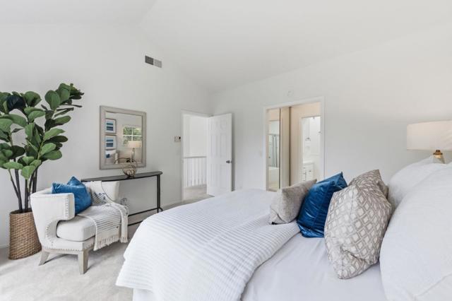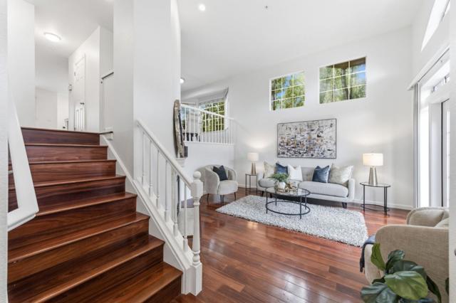 Welcome to this charming & spacious multi-level 3-bedroom, 2.5-bathroom townhome is located in the beautiful Rosewalk community. Spanning 1826 square feet, this residence offers an inviting & spacious layout. Vaulted ceiling in the formal living room create a generous sense of space & includes the ambiance of a cozy fireplace. The formal dining room loft is ideal for special occasions or a perfect work from home space! Kitchen features breakfast bar & modern appliances including a gas range, dishwasher & refrigerator. The kitchen/family room combo provides a cozy space, perfect for entertaining or family gatherings. Flooring on the main levels is a mahogany engineered hardwood, adding warmth & style throughout. Carpeting featured on stairs & bedrooms. Unique design elements include high ceilings, open beam ceilings, skylights, & vaulted ceilings, enhancing the sense of openness. Convenience is key with an in-home washer & dryer for laundry needs. Spacious front patio provides an al fresco area for outdoor entertaining. Balconies are adjacent to the kitchen and primary suite. Oversized 2-car attached garage has ample storage space available. The Rosewalk provides a community pool and spa. Situated in the Palo Alto Unified School District (Buyer to verify enrollment)