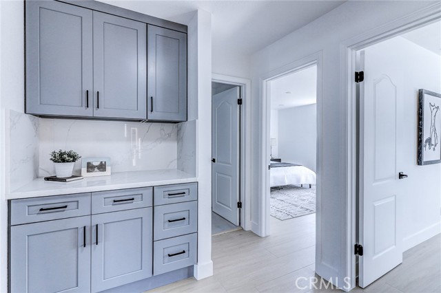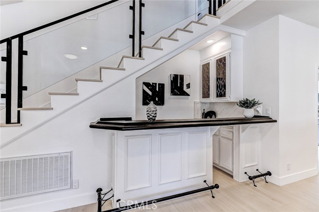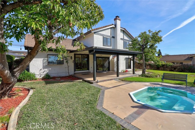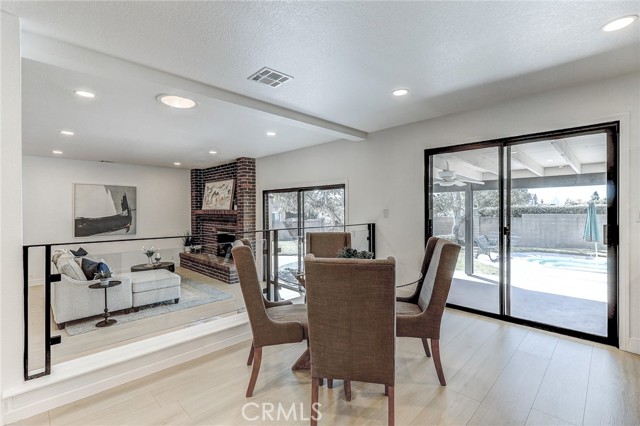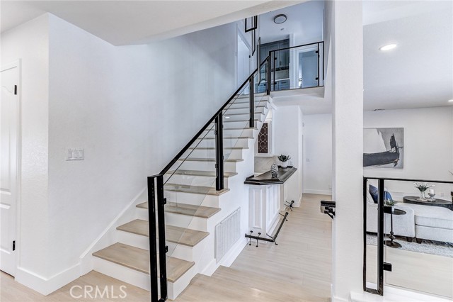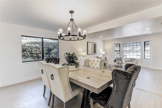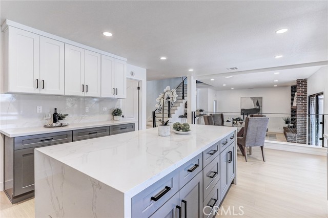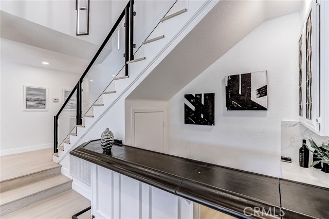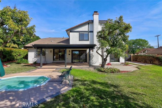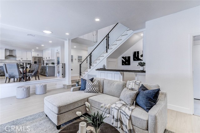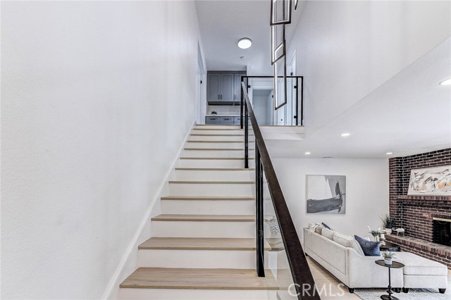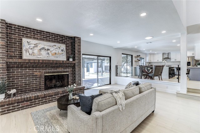 Exquisitely renovated and impeccably designed, this stunning 4 bedroom, 3 bath estate in the heart of Glendora offers 2,652 square feet of sophisticated living and effortless elegance. Privately set behind a sweeping circular driveway and complemented by a three-car finished garage with generous additional parking, this residence immediately impresses with its striking curb appeal, partial brick façade, and grand double-door entry. Inside, upgraded wide-plank flooring and soft recessed lighting create a warm yet contemporary ambiance throughout. The thoughtfully designed formal living and dining spaces include a step-down living room adorned with a charming bay window—an inviting setting for intimate gatherings and refined entertaining. At the heart of the home lies a spectacular, fully remodeled chef’s kitchen featuring gleaming quartz countertops, brand-new stainless-steel appliances, custom cabinetry, and a dramatic waterfall island with seating for four. The adjoining breakfast nook overlooks the family room through a sleek glass balustrade and opens seamlessly to the backyard, creating a natural flow between indoor comfort and outdoor leisure. The step-down family room is rich in character, highlighted by a statement brick-mantled fireplace, a full wet bar, and an expansive sliding door that enhances the home’s indoor-outdoor lifestyle. A desirable downstairs bedroom suite offers privacy and flexibility, complete with yard access and serene mountain views. The adjacent three-quarter bath has been beautifully reimagined with quartz counters, designer cabinetry, and direct outdoor access—ideal for guests or future pool convenience. Ascending the modern glass-balustrade staircase, the primary suite serves as a true private retreat. Enjoy a covered balcony, dual custom closets with elegant Japanese koji-style doors, and a spa-inspired bath featuring a soaking tub, separate shower, dual vanities, and a state-of-the-art Japanese bidet toilet. Two additional upstairs bedrooms capture picturesque backyard and mountain vistas and share a tastefully remodeled bath appointed with a waterfall shower and premium finishes. The backyard is a tranquil sanctuary, thoughtfully landscaped and centered around an inviting in-ground hot tub. A detached structure with electricity offers endless possibilities whether envisioned as a private fitness studio, creative workspace, executive office, or refined retreat.