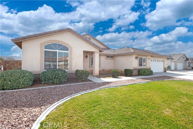 Welcome to this spacious and beautifully maintained 5 bedroom, 3 bathroom home located in the desirable Vineyards area of Apple Valley. Offering 2,570 square feet of comfortable living space on an expansive 25,283 sq ft corner lot, this property provides room to spread out both inside and out. This open concept kitchen offers warm cherry oak cabinets, a functional pantry, and large kitchen Island with room for seating for all your guest. Tile and carpet flooring create a balance of style and comfort throughout. The private primary suite offers a relaxing retreat, while the additional bedrooms provide flexibility for family, guests, or home office. Step outside to enjoy low-maintenance landscaping, two covered patios in the backyard, perfect for entertaining or relaxing, and a huge driveway with plenty of space for RV parking and toys. The oversized corner lot adds extra privacy and curb appeal. This is a fantastic opportunity to own a large home on a generous lot in a sought after neighborhood-perfect for those looking for space, functionality, and great outdoor living.