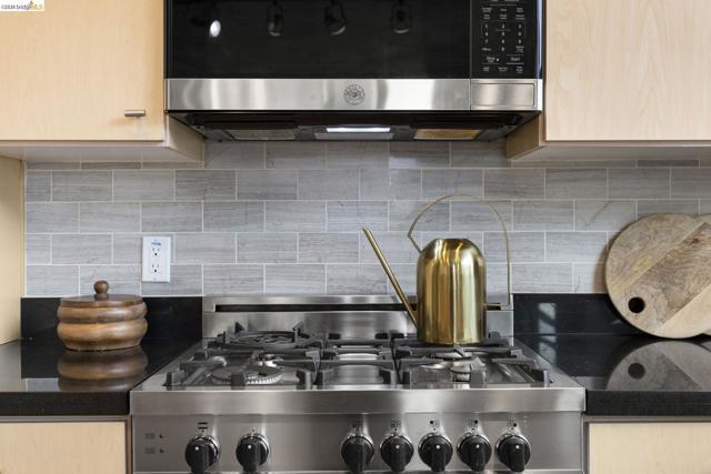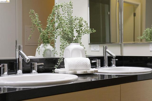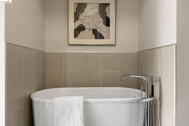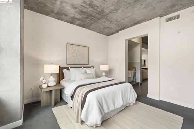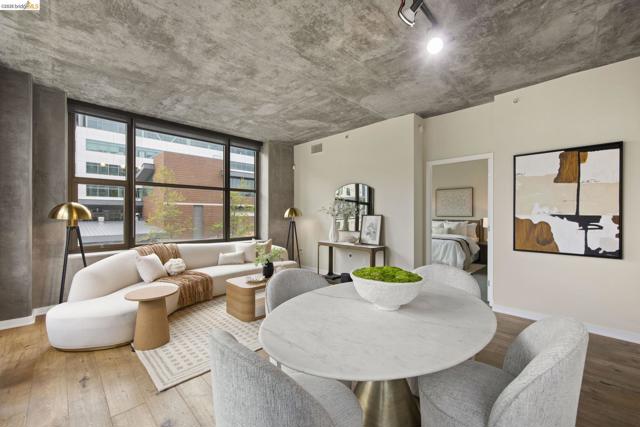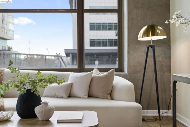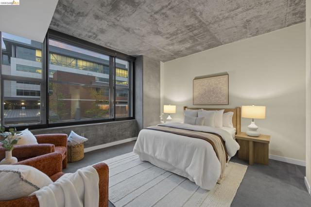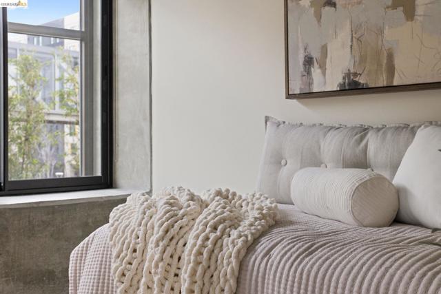 An incredible opportunity at The Bond—this two-bedroom, two-bath corner condo offers 1,260 sq ft of light-filled urban living in Jack London Square. The split-bedroom layout provides privacy, while open living and dining areas are perfect for entertaining. Loft-inspired details include exposed concrete walls and ceilings combined with sleek white walls and DuChateau wood floors. The chef’s kitchen features Bertazzoni oven and microwave and Bosch dishwasher. A major highlight of this configuration that sets it apart is the spa-like primary suite with a standalone soaking tub, separate shower, dual sinks and walk in closet. Additional custom windows added in the bedrooms make this unit a stand out in the building. The secondary bedroom is a perfect space for a home office; guest room, or kids room with a bathroom (shower over tub) right next to it. There is also in-unit laundry with additional storage, and deeded one-car parking in a secure garage. The Bond is a fabulous top notch Jack London Square building with concierge service, business center, a modern hotel-esque lobby; gym, bbq/community area, and huge dedicated dog park - making this a sought after landing space for professionals, do-ers, travelers, furparents, commuters or work-from-homers. Come tour, and fall in love!