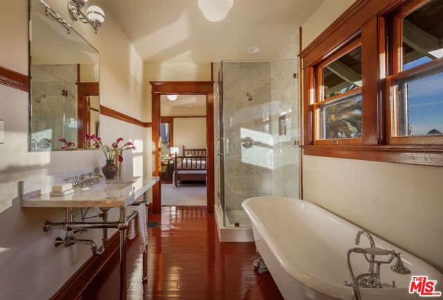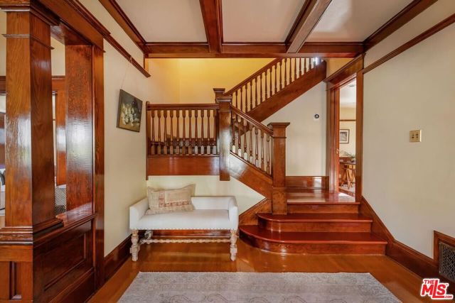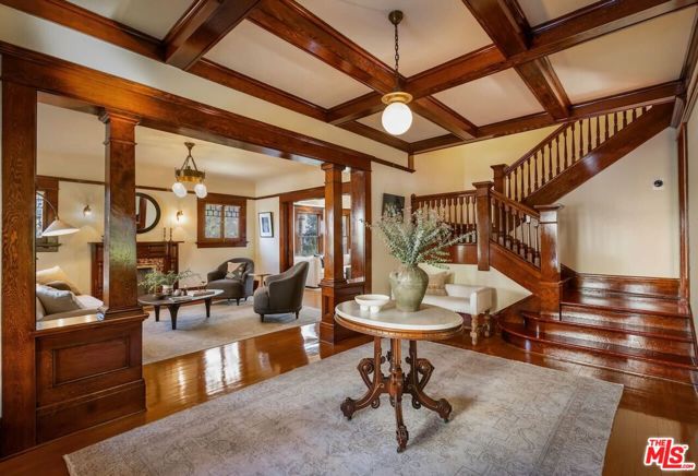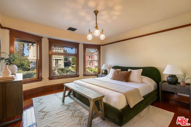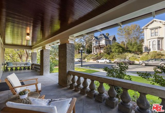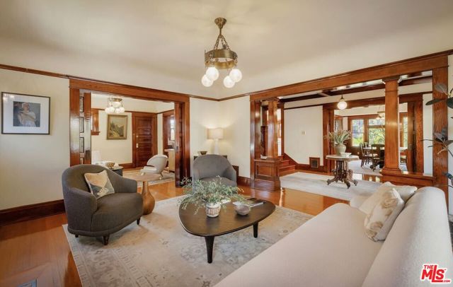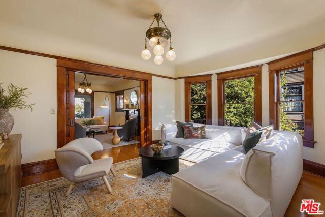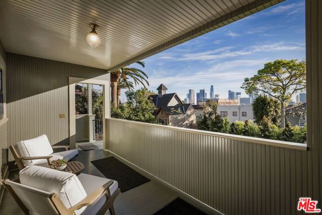 Having just completed a nearly 2-year, $1M+ restoration, The Thomas House is preserved, repaired, refinished, and modernized with all the amenities for today's discerning buyer. Built in 1907 by a wealthy plumber, The Thomas House is one of only two early transitional Craftsman homes on the block. Subdued but stately, with simpler lines, an elegant front porch, and spacious rooms, The Thomas House provides a contrast to its ornate Victorian neighbors. Situated on an oversized lot, this tranquil but solid residence has been meticulously restored, preserving its original ornamental woodwork, pocket doors, tiled decorative fireplaces, hardware, windows, and hardwood floors. All of the bedrooms are on the second floor. The primary suite has an adjoining sitting room, walk-in closet, and en-suite bath with a claw-foot tub and separate shower. System upgrades include a new roof, a zoned HVAC system, modern appliances, and plumbing, electrical, and foundation upgrades. Each sunlit room has captivating views: from the front, the famous Thriller and Charmed Houses, and from the rear, sweeping views of the Downtown skyline. Enjoy the sunset from one of the two back porches or in the large and serene back yard. Let your imagination and creativity soar in the enormous attic and full basement. The property is located in the 1300 Block of Carroll Avenue National Register Historic District in the Angelino Heights HPOZ, which has the highest concentration of Victorian homes in all of Los Angeles. This is your opportunity to become the next steward of one of Los Angeles' cherished historic gems.