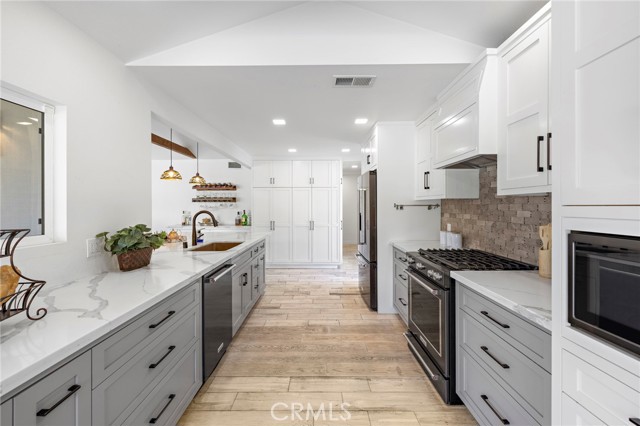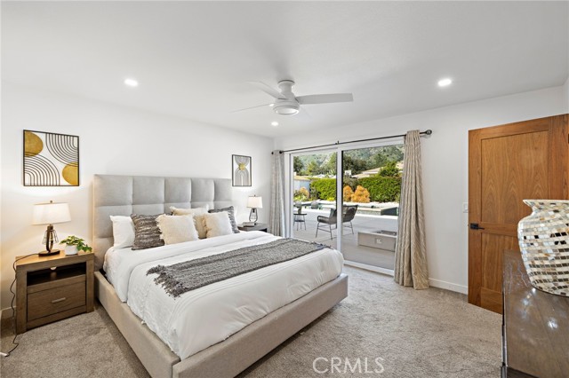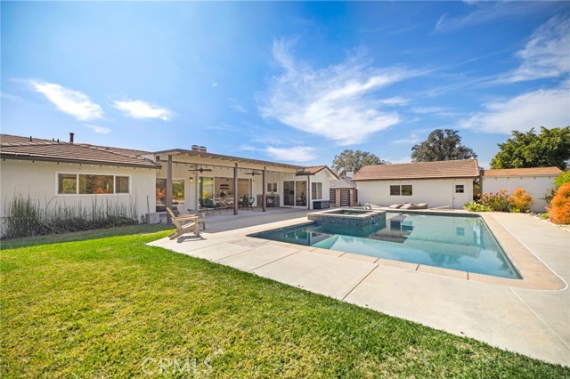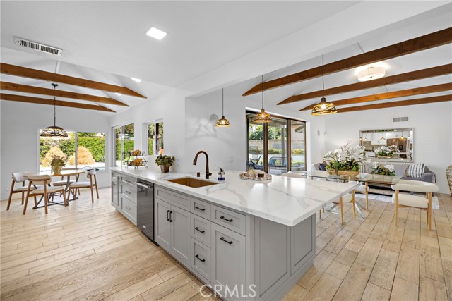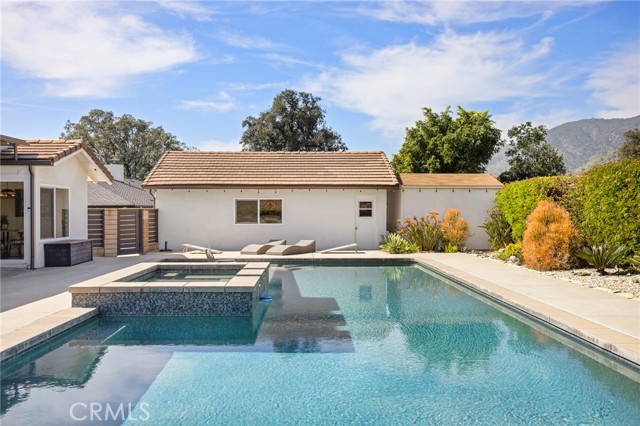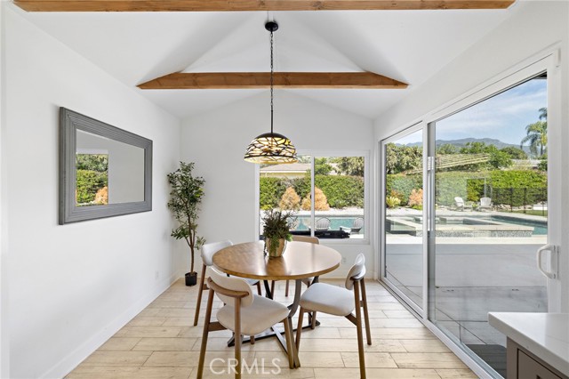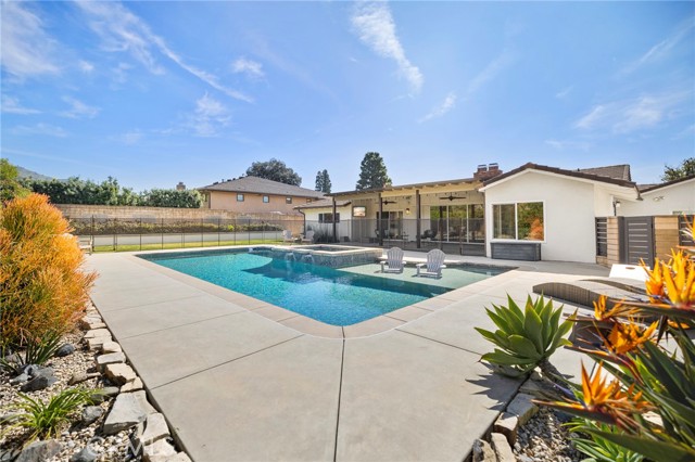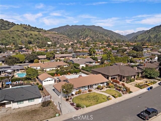 A rare find in the prestigious Hidden Springs neighborhood, this beautifully renovated single-story home showcases refined modern farmhouse style and bright, open living spaces throughout. Designed for relaxed everyday living and effortless entertaining, the thoughtfully crafted floor plan features a dramatic multi-slide patio door that opens to a spacious California room — perfect for outdoor dining and hosting gatherings year-round. The kitchen blends timeless shaker cabinetry with sleek dark stainless appliances, a cheerful dining nook, and a generous quartz island that flows seamlessly into the family room with vaulted, beamed ceilings. A spacious game room offers the ultimate setting to gather with friends and family. Stunning mountain views grace most rooms, including the serene primary suite complete with a spa-inspired bath featuring a walk-in shower, dual custom quartz vanities, and a freestanding soaking tub. The fourth bedroom is currently configured as a den or home office with convenient access to an adjacent three-quarter bath. All three bathrooms are beautifully updated with stylish, contemporary finishes. Step outside to your private backyard retreat, where a fully renovated pool with Baja shelf and raised spa is complemented by an expansive patio and tranquil mountain views. Water-wise landscaping with succulents and native plantings ensures easy maintenance and year-round appeal. A new concrete driveway leads to a detached two-car garage. Ideally located within the highly regarded Glendora Unified School District and just a short Distance to Sellers Elementary school, Goddard Intermediate School and George Manooshian Park and its sports fields, this exceptional home offers the perfect blend of comfort, style, and location.