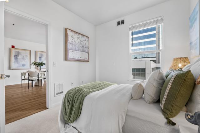 Sophisticated light-filled 2 bedroom, 2 bathroom, move-in ready condo located in the award-winning Landmark Plaza. Offering refined urban living in one of downtown Oakland’s best locations. Set within a gated complex that’s centered around a beautifully landscaped courtyard blending historic Victorian character with contemporary design. This bright and airy residence features an open layout with expansive windows framing city outlooks and views toward Lafayette Square. The spacious living and dining areas are ideal for both everyday living and entertaining. The modern kitchen offers stainless steel appliances and ample cabinetry. While the updated primary suite features a walk-in closet with built-in storage and en-suite bath. A second bedroom provides flexibility for guests, office, or creativity. In-unit laundry and secured garage parking add convenience. Incredible 97 walk score and 91 bike score! (per WalkScore.com) Enjoy immediate access to downtown Oakland’s vibrant dining, cafes, weekly farmer’s market, Old Town, Uptown entertainment district, Jack London Square waterfront, and SF ferry. With BART just blocks away and easy freeway access, commuting throughout the Bay Area and to San Francisco is seamless. Don't let this opportunity pass you by!