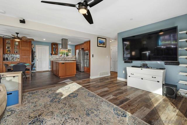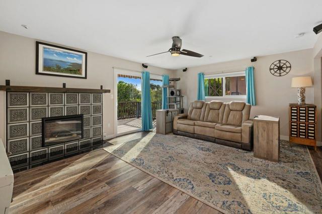 Perched atop Dictionary Hill this south-facing VIEW home has panoramic views of Sweetwater Reservoir and the surrounding mountains. The main level features an open-concept floorplan with a beautiful kitchen, newer vinyl flooring, and seamless indoor-outdoor flow to a view balcony and covered patio. The expansive downstairs is currently set up as a studio apartment complete with a spa-like bathroom and its own fireplace. It offers incredible flexibility, ideal for multi-generational living, guest quarters, rental income potential, or conversion into a primary suite. Recent upgrades include landscape and hardscape, newer fencing, carport, and owned solar panels for energy efficiency and long-term savings. Property also features dual pane windows and a tankless water heater.