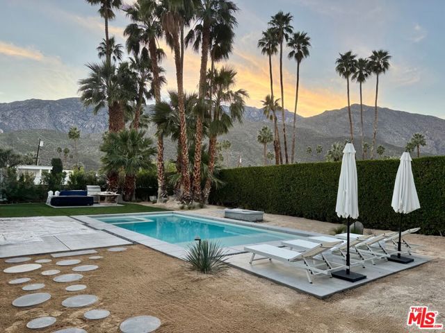 Stunning fully renovated and designed mid-century modern gem in the renowned Twin Palms Neighborhood. Designed by the acclaimed modernist architect William Krisel AIA, built by the legendary Alexander construction company. Situated on a corner lot of a private street that provides stunning panoramic mountain views from front to back. Clean lines, high ceilings with exposed beams and clerestory windows that Krisel was known for, are featured throughout the home, framing the mountains and letting in calming natural light. The open layout interior has been fully reimagined with luxury gourmet chefs' kitchen outfitted with Viking appliances and large island. Beautiful redone bathrooms with high-end fixtures. Custom stonework and natural white oak cabinets and flooring flow throughout the home. Stepping out into the backyard is pure magic. Immersed by the mountains from all angles, lounge areas, a sparkling new sleek modern pool/spa built by Teserra, firepit frames the pool, and built in BBQ. A fully private and peaceful luxury escape with new and mature landscaping perfect for entertaining. Also, a bonus attached casita with backyard entrance, with full bath and small kitchenette/wet bar. The elegance of this property has been brought to life with sleek and elevated design elements creating a captivating atmosphere, making it a truly distinctive property. Rental permits in Twin Palms are still available and have not reached 20% cap. Buyer to confirm. Fee Land. (MORE PHOTOS COMING SOON)