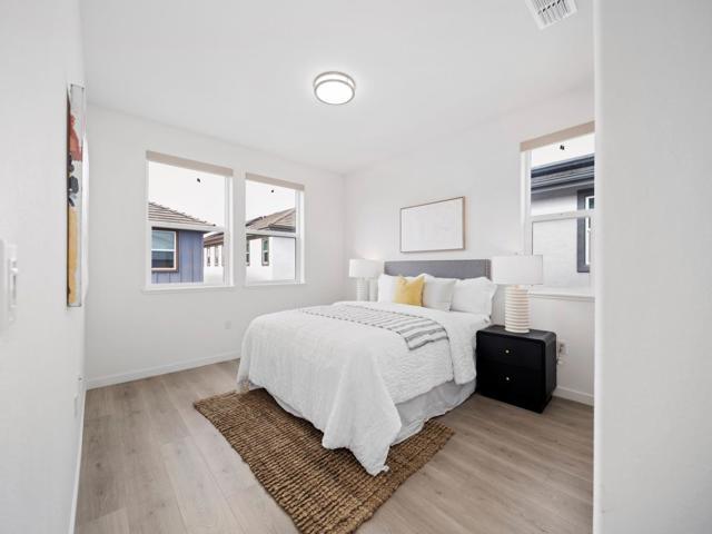 Built in 2019, this beautifully appointed 4-bedroom, 3.5-bath single-family home in one of San Joses most sought-after newer communities contains of $77K upgrades. Thoughtfully designed for flexibility, the home features a private ground-level bedroom and full bath ideal for multi-generational living, guests, or a dedicated office. The open-concept main level is anchored by a chef-inspired kitchen with premium European appliances, quartz countertops, sleek cabinetry, and an oversized island perfect for entertaining. High ceilings and expansive windows fill the space with natural light, creating a bright and welcoming atmosphere. Upstairs, the spacious primary suite offers a walk-in closet and spa-like bath with dual vanities, a soaking tub, and separate shower. Well-proportioned secondary bedrooms provide comfort and privacy. Enjoy indoor-outdoor living with a paved side yard and landscapes. Additional features include owned solar panels, EV charging capability, energy-efficient systems, generous storage, and a finished two-car garage. Residents enjoy access to resort-style amenities including a clubhouse, playground, walking paths, garden areas, and BBQ spaces. Ideally located near major commuter routes, shopping, dining, and everyday conveniences in the heart of Silicon Valley.