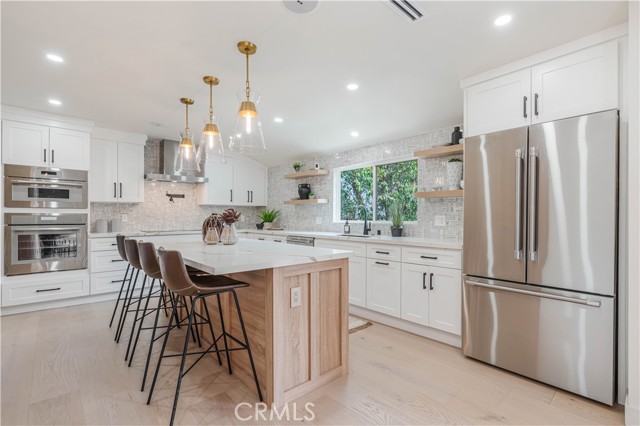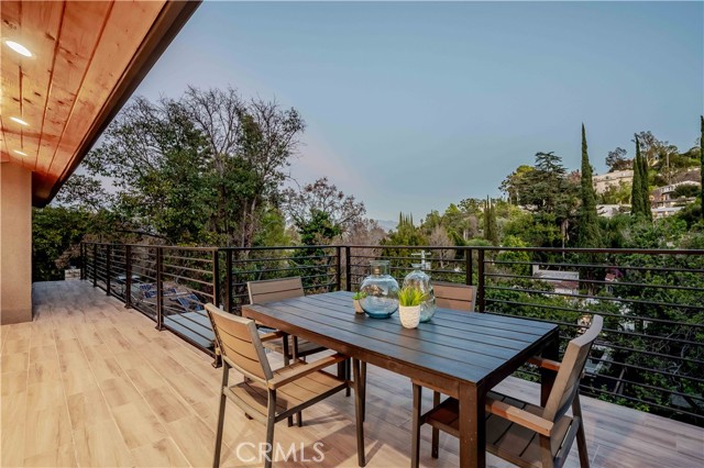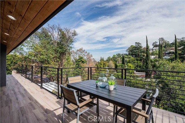 Nestled in the hills of Sherman Oaks, this modernized traditional has been completely gutted to the studs and thoughtfully reimagined with elevated designer finishes throughout. This masterpiece offers 3 BR + 3.5 BA, 2,127 sq. ft of living space set on a 8,800 sq. ft. lot with every detail reflecting quality craftsmanship and timeless sophistication. Upon entry, you are welcomed by soaring vaulted ceilings and a stunning family room highlighted by exposed beams and dramatic walls of glass that frame the lush mountain hillside and opening to large balcony. Natural light pours in, creating a bright, open atmosphere that seamlessly blends indoor and outdoor living. The chef’s kitchen is beautifully appointed with custom cabinetry, quartz countertops, Thermador SS appliances, wine fridge and center island flowing effortlessly into the dining area and family room, making it ideal for both everyday living and entertaining. The expansive primary suite which opens to the terraced backyard offers a true retreat, featuring a generous walk-in closet and a spa-like bath complete with dual sink vanities, a separate soaking tub, and a glass-enclosed shower. A spacious secondary bedroom is also located downstairs, offering an en-suite bath and tranquil views of the surrounding greenery. Additional highlights: Wired for WIFI, TV in each room and sound system w/speakers in Living rm., dining area, kitchen, and outdoors. Relax in your spacious lounge area with fire pit. The lower part of the backyard is a huge flat pad - build a pickle ball court or large pool. This exceptional home captures the essence of refined hillside living, combining modern luxury with classic architectural charm. A must see!
