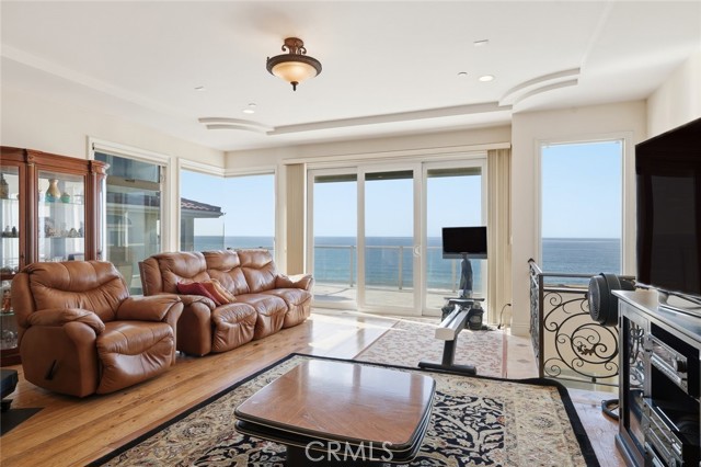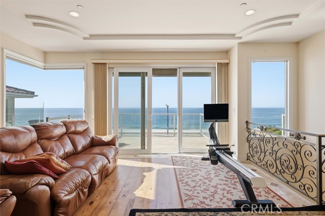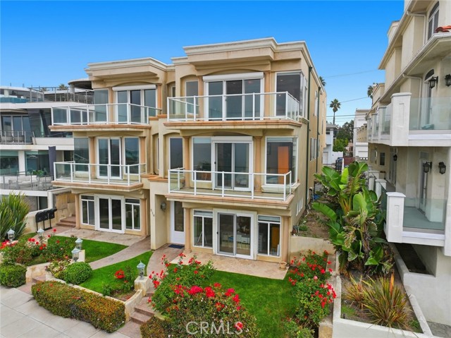 Three levels of direct ocean-view living define this rare South Redondo Beach residence—each floor a private vantage point overlooking the Pacific from Palos Verdes to Malibu. Set along the quieter stretch of The Esplanade, just steps from the Knob Hill beach stairs and minutes from Riviera Village, this three-bedroom, two-and-a-half-bath luxury oceanfront residence home offers front-row coastal living with rare added privacy. Built in the early 2000s as one of only three homes in a boutique development, this newer-construction property blends timeless design with modern livability. Tall ceilings (10' on the third floor and 9' on the first and second floors), genuine walnut and travertine floors,natural light, and walls of glass connect every interior space to the horizon. The open-concept main level flows effortlessly between living, dining, and kitchen areas, all leading to a full-width ocean-view deck perfect for morning coffee or sunset gatherings. The chef's kitchen combines form and function with stone counters, custom cabinetry, and premium appliances. Upstairs, the primary suite enjoys its own ocean-view balcony, walk-in closet, and spa-inspired bath with dual vanities, soaking tub, and separate shower. Two additional bedrooms, a full laundry room, and ample storage complete the upper levels. A reverse floor plan with entertaining and main living on the upper level adds to the security and privacy of this remarkable oceanfront find. On the entry level floor, a flexible beach room opens to an elevated patio and landscaped yard area—set above street level for enhanced privacy and reduced impact from passersby or pets. The space is ideal as a guest suite, home office, or media lounge with a coastal backdrop. A direct-entry two-car garage offers convenience and security, with easy access in and out of South Redondo via Knob Hill or Avenue A—an uncommon luxury for an oceanfront address. From this location, everything is within reach: the sand, the pier, and the boutiques and cafés of Riviera Village, Palos Verdes and beyond, Torrance shopping to the east and neighboring beach cities along The Strand to the North. Yet inside this home, the feeling is calm and removed—quiet, connected, and unmistakably the epitome of South Bay front row living.