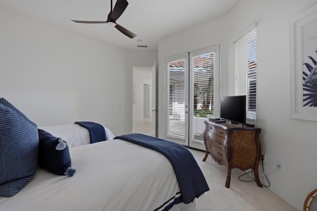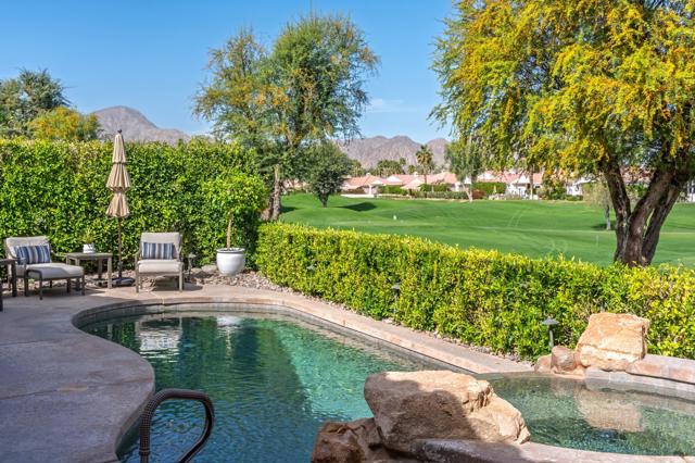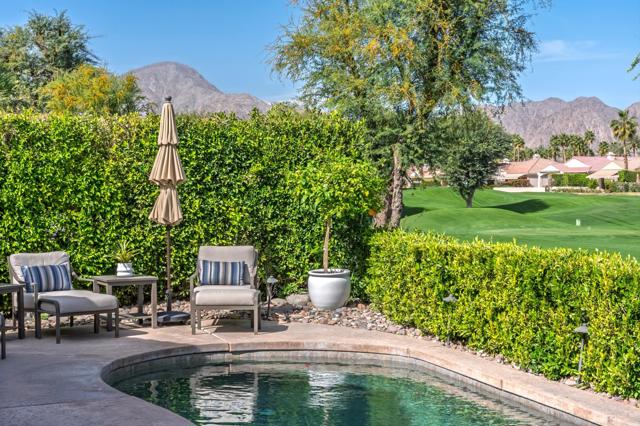 Luxury Turnkey Golf Course Retreat in The Citrus - La Quinta, CA. Welcome to one of the most delightful and impeccably styled homes in The Citrus Golf Country Club. From the moment you enter the private courtyard, there is a sense of arrival, an immediate feeling that this home is something special. Elegant yet warm, refined yet inviting, it has been thoughtfully curated and is offered turnkey furnished, allowing you to begin enjoying the desert lifestyle from day one.Inside, the open-concept design unfolds effortlessly. The great room is both sophisticated and comfortable, featuring a custom built-in cabinet with a hidden television that preserves the clean architectural lines. The space flows seamlessly into the gourmet kitchen, where granite countertops, a gas cooktop, nice counter top spaces, and ample bar seating make entertaining feel natural and easy. Adjacent, a welcoming dining area creates the perfect setting for intimate dinners or lively gatherings.A wall of windows frames sweeping views of the 8th fairway of The Citrus Private Golf Course, bathing the home in natural light and creating a stunning indoor-outdoor connection that defines true desert living.Step outside and the experience continues. The backyard is a private resort-style retreat overlooking the fairway. A sparkling pebble-tec pool and spa invite relaxation, while the new BBQ grill, outdoor dining area, and comfortable lounge seating set the stage for unforgettable evenings under the desert sky. Even your four-legged companions are considered, with a dedicated artificial turf area designed just for them. The primary suite is a peaceful sanctuary, offering direct views of the pool and golf course. Two walk-in closets provide generous storage, and the en-suite bath delivers both comfort and privacy. Thoughtfully separated from the primary suite, the guest bedroom features its own en-suite bath, ensuring a private and comfortable stay for family or friends.Near the entry, a versatile bonus room with a pull-out sofa and privacy door offers flexibility as an overflow guest room, office, or cozy den.Completing the property is a detached casita with its own en-suite bathroom -- ideal for visiting guests, extended family, or additional privacy.With a two-car garage plus a golf cart, and beautiful furnishings and decor throughout, this home truly checks every box. Whether you are seeking a primary residence, seasonal retreat, or investment property, you will love this home.