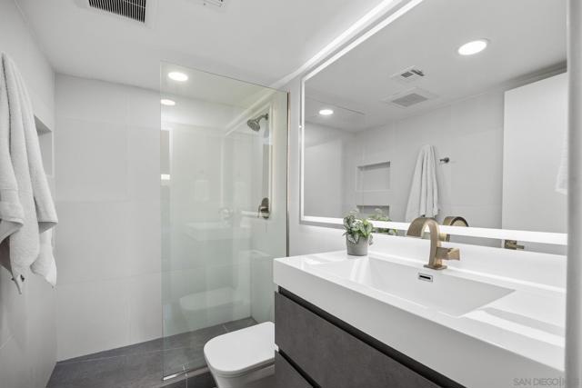 Discover the perfect blend of modern sophistication and neighborhood charm in this rarely available end-unit in the heart of one of San Diego’s most vibrant communities. This meticulously updated 2 bedroom, full 2 bath radiates luxury with high-end craftsmanship, featuring spa-like bathrooms with designer tile work, a deep soaking tub, glass tile backsplash with Soapstone countertops in the kitchen and new appliances. This home has been thoughtfully designed for modern comfort for the past 10 years boasting brand-new LVT flooring, large picture windows, custom fireplace, solid interior doors, in-unit full-sized washer/dryer, central AC, energy-efficient newer windows & new slider, 2 patios, added storage and high-tech upgrades like USB outlets and Elfa storage systems. Nuzzled in a private, gated complex of only seven units, this pet-friendly gem offers the convenience of a rare oversized patio retreat all while maintaining a Walk Score that rivals the best in the city. You are just steps from the Trolley Barn Park and the Michelin-recognized Soichi Sushi, AND the bustling restaurants, cafes and shops perfectly bridging the walkability of University Heights, North Park, and Hillcrest. Oh and walk across the street to enjoy one of the best coffees at Mystic Mocha, your new regular coffeehouse. The craftsmanship and luxury is top notch as the Sellers remodeled to keep this home forever making this home above and beyond anything else on the market. It's been deeply cherished, reflecting a level of care and love. Come and continue the love!