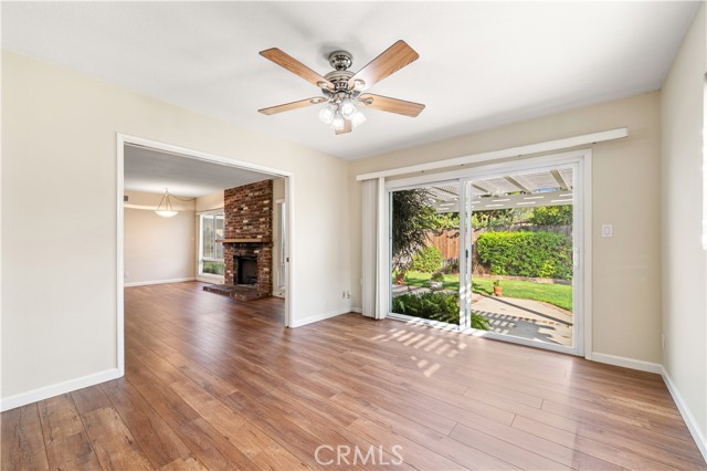 First time on the market in over 40 years, this storybook single story ranch home offers 4 bedrooms and 2 baths with just over 1700 sq feet of living space. Galley style kitchen has an eat in dining area that opens to a versatile space that can be used as a formal dining room or cozy family room.The living room has dark wood floors, brick fireplace and large floor to ceiling windows that overlook the charming yard and covered patio. Two car attached garage and cul de sac street. This home has endless potential.