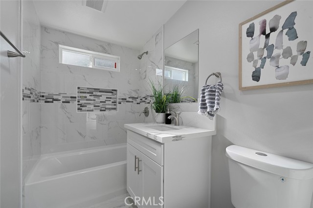 Beautifully Remodeled Single Story Home for Sale in La Puente, CA. This Home is Completely Remodeled and features 974 Sq. Ft., 3 Bedrooms, 1 ¾ Bathrooms, new Light-Wood Colored Vinyl Plank Flooring, New Lovely Grey Paint, Completely Remodeled Kitchen & Bathrooms w/ White Cabinets & Quartz Counter-tops, Ceiling Fans, Recess Lighting, Inside Laundry Room, Master Bedroom w/ 2 Closets – a Walk-In Closet & a Second Closet. Large Lot at 7,055 Sq. Ft., 1-Car Attached Garage, Spacious Backyard w/ plenty of room for outdoor living. Near all amenities, including shopping centers, parks, entertainment, grocery stores, schools, banks, and restaurants. This home is a Beauty and has a lot to offer! Thank you for showing.