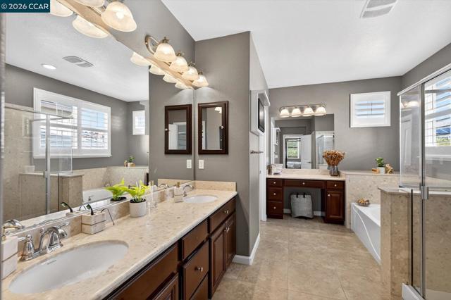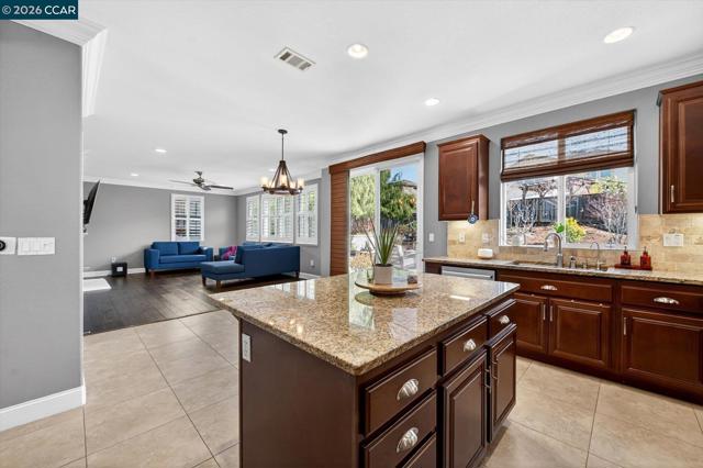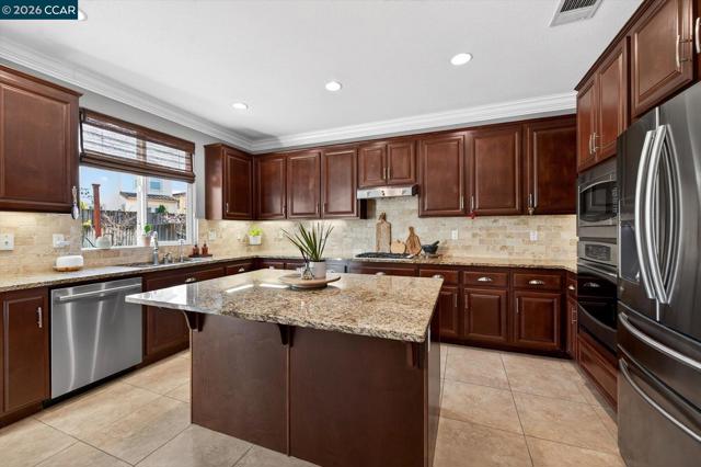 Welcome to this exquisite residence nestled in the prestigious Positano Development, where luxury meets modern convenience in a highly sought-after community. Discover a bright and inviting interior bathed in natural light both morning & afternoon. Main level boasts gleaming hardwood floors, custom designer painting that adds a touch of elegance to every room. The stunning chef's kitchen, featuring a spacious island, ample counter space, abundant cabinet storage, and a convenient walk-in pantry—perfect for culinary enthusiasts. Adjacent, cozy family room invites relaxation with a gas fireplace, downstairs bedroom and full bath. Upstairs, you'll find spacious bedrooms, custom closet organizers, along with a large bonus loft for relaxing or study. Upstairs Laundry room. The home is thoughtfully designed for efficiency and sustainability, including owned solar system, tankless water heater, whole house water filter, Tesla EV charger in the 3-car garage, w/ epoxy-finished floor. Level private backyard is an entertainer's dream, designed for gatherings and children's play. Gas fire pit, lush garden areas, all in complete privacy. The location is unbeatable: surrounded by neighborhood parks, fantastic schools, minutes from restaurants, Costco, shopping centers, hospitals, 580 Fwy