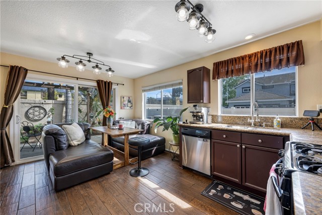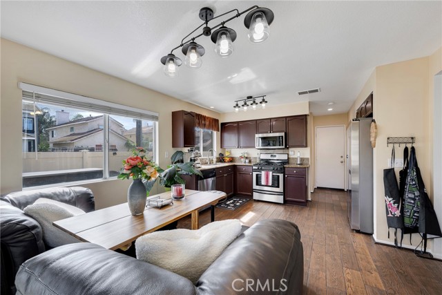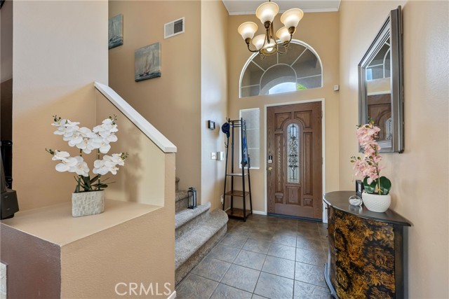 Welcome to this amazing corner lot home located in a very desirable area of Corona! Just pulling up you see pride of ownership along with great curb appeal! As you enter your new home you are greeted with custom tile, high ceilings and an open floor plan. The living room is big with a nice cozy fireplace for those chilly winter nights as well as custom flooring. As the floor plan flows effortlessly into your dining area you will find a beautiful Kitchen with granite counter tops, stainless steel appliances, beautiful floors as well as lots of cabinet space. The adjacent dining area has plenty of room to enjoy family dinners with lots of natural light. Down the hallway you will find your laundry area as well as a half bathroom with custom tile- perfect for guests! As you make your way upstairs and to the left you will find the master bedroom which is large with high vaulted ceilings along with double his and hers closets and of course custom flooring! The master bathroom has double sinks, a tub/shower combo and nice custom tile. Down the hallway you have two really good sized bedrooms each with their own custom flooring and good sized closets and a bathroom that is right next door which also offers custom tile flooring. The backyard has plenty of room, pleasant landscaping, patio cover, with a mix of vinyl fencing and block wall for kids to play, entertaining or just relaxing with perfect functionality. The 2 car garage has plenty of storage and also comes with it's own mini split AC - BONUS - this home comes with affordable solar!! Other great amenities is a gated community, a big community park, playground, basketball court and it's just a great friendly neighborhood to raise a family! Come take a look at this amazing home before it's gone!!