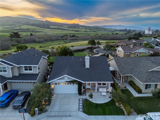Welcome to an exceptional single-level residence tucked away on a quiet cul-de-sac in one of Old Orcutt's most coveted enclaves. Perfectly positioned within walking distance to the charming shops, acclaimed restaurants, and wine bars of Old Town Orcutt, this home offers a rare blend of privacy, sophistication, and walkable lifestyle. Thoughtfully designed with an open-concept layout, the home unfolds into a spacious living area that seamlessly transitions into the kitchen and sunroom--creating an effortless flow for both intimate gatherings and everyday living. Natural light fills the space, enhancing the home's warm, inviting ambiance. At the center of the home, the chef's kitchen is both refined and functional, featuring Caesarstone countertops, a full-height subway tile backsplash, a 30'' Wolf gas range, a Sub-Zero refrigerator with integrated ice and water dispenser, and a custom Sub-Zero wine refrigerator with dual temperature zones, accommodating approximately 134 bottles. A built-in coffee and wine station further elevates the space, thoughtfully designed for both everyday enjoyment and entertaining. Every detail has been carefully considered, with elevated finishes throughout including polished concrete flooring, luxury vinyl plank in the bedrooms, custom wood accent walls, recessed lighting, and a statement fireplace with integrated media cabinetry. The bathrooms have been beautifully renovated, offering a spa-inspired experience with designer touches. The outdoor living experience is equally compelling. The private backyard opens to breathtaking mountain views, creating a serene backdrop for relaxation or entertaining. Enhanced with custom hardscaping, lush landscaping, ambient lighting, and a charming front porch swing, the setting feels both refined and welcoming. A custom-built she shed or office provides a flexible space for work or retreat. Additional features include a dog-friendly yard, access to a private neighborhood dog park, and a finished garage with epoxy flooring. Ideally located near local schools, this home offers both convenience and an elevated Central Coast lifestyle. A rare offering that seamlessly blends luxury, location, and lifestyle--all in the heart of Old Orcutt.