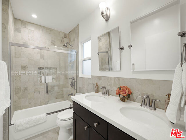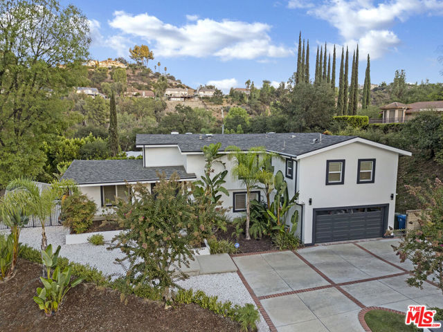 This fully renovated 5-bedroom, 5.5-bath, 3,614-square-foot residence is ideally located on a quiet cul-de-sac near Braemar Country Club in Tarzana. The home offers a bright, open floor plan highlighted by high ceilings, wood flooring, and refined living and dining areas designed for both entertaining and everyday comfort. High-end finishes and quality craftsmanship throughout create a sophisticated yet welcoming environment. All bedroom flooring has been replaced with hardwood floors, adding warmth and continuity throughout the home. The chef's kitchen features premium stainless steel appliances, custom cabinetry, quartz countertops, and an oversized center island. It is further enhanced by a brand-new refrigerator, washer, and dryer, and seamlessly connects to inviting family spaces anchored by a fireplace. A main-level bedroom with an ensuite bath provides flexible use as a guest suite or home office. Upstairs, the primary suite serves as a private retreat with vaulted ceilings, a walk-in closet, and a spa-inspired bathroom. Additional bedrooms are generously sized and thoughtfully arranged, including two secondary bedrooms with their own ensuite baths and another beautifully updated bathroom with dual sinks. A private in-law suite on this level offers added comfort and versatility with its own full bath. Designed for seamless indoor-outdoor living, expansive sliding glass doors open to a private backyard retreat centered around a stunning resort-style pool and spa. The sparkling pool features elegant stone detailing and generous space for both relaxation and recreation, while the attached spa provides the perfect setting to unwind. Surrounded by mature landscaping for enhanced privacy, the outdoor space also includes multiple seating and dining areas ideal for entertaining, along with a built-in BBQ for effortless al fresco gatherings. The beautifully designed grounds create a true oasis atmosphere, perfect for enjoying Southern California living year-round.
