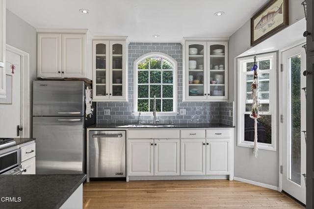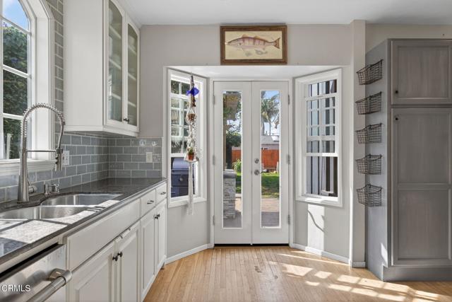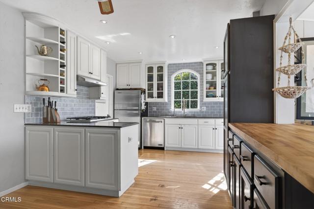 Welcome to 405 Howard Street, a charming single-story home right in the heart of Midtown Ventura. This is one of those locations people love -- close to top-rated schools and just minutes from shops, restaurants, Ventura beaches, and everyday conveniences. This welcoming home has been thoughtfully expanded to include a spacious primary suite, featuring a modern bathroom with walk-in shower, and a door that leads out to the tranquil backyard. Inside, you are greeted with beautiful original hardwood floors that add warmth and character throughout, along with plenty of natural light that fills the home and gives it an open, inviting feel. The kitchen has been updated and improved with stylish backsplash tiles, updated appliances, and additional cabinetry built out for added storage space. The added sunroom is a perk for additional living space, such as a home office, playroom, or dining area for entertaining. The bedrooms are all equipped with mini-split heating and cooling systems for added comfort. Outside, the curb appeal immediately draws you in, and the backyard is ready to enjoy. A lovely pergola creates a perfect shaded gathering space, complemented by a built-in barbecue, a large grassy area for relaxing or playing, and a storage shed with electricity -- ideal for hobbies, a workshop, or extra storage. With its welcoming atmosphere, great indoor-outdoor flow, and unbeatable Midtown location, this home is easy to love and ready to enjoy!