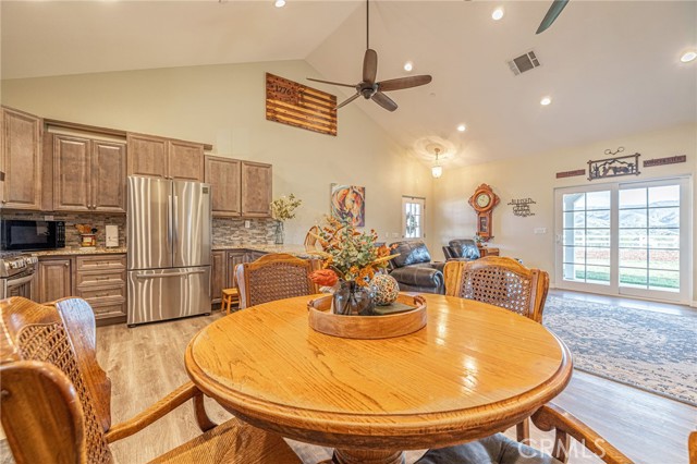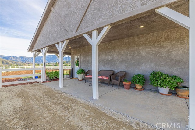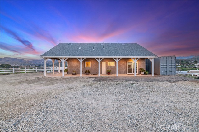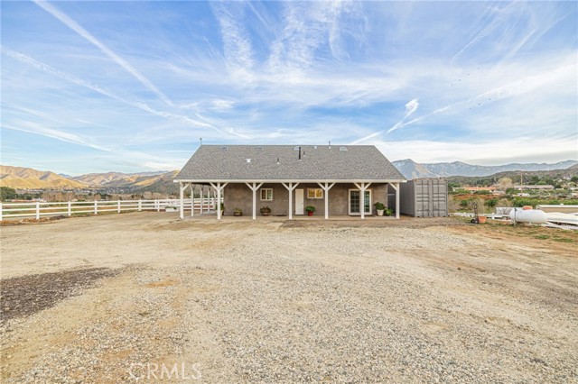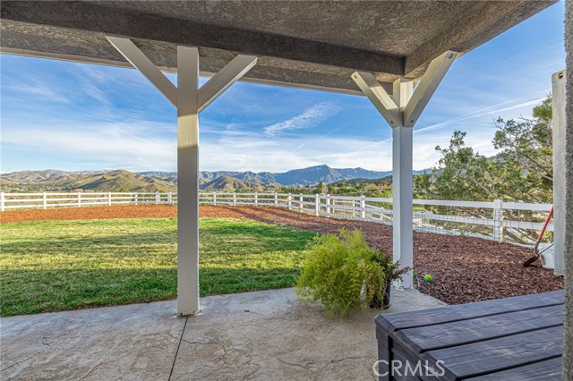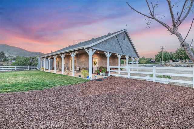 Welcome to your private country retreat showcasing stunning mountain views and tranquil surroundings. This newly built, meticulously maintained single-story home offers the ideal combination of rural charm and modern convenience. A welcoming wraparound covered porch creates the perfect setting for morning coffee or relaxing sunset evenings. Inside, the open-concept floor plan features soaring ceilings, recessed lighting, and wide-plank laminate flooring throughout, creating a bright and cohesive living space. The spacious kitchen is designed for both everyday living and entertaining, complete with rich wood cabinetry, granite countertops, stainless steel appliances, a custom tile backsplash, and a large peninsula with bar seating. The adjoining dining area is filled with natural light, making it ideal for gatherings. The generously sized primary suite offers peaceful outdoor views and private patio access, creating a light and serene retreat. An additional well-proportioned bedroom provides flexibility for guests, a home office, or hobby space. Step outside to enjoy fenced areas and usable land with endless possibilities—bring your animals, RV, and recreational toys, or design your dream outdoor oasis. A convenient dog washing station adds a thoughtful touch for your furry companions. Enjoy the privacy of country living while remaining just a short drive from town amenities. Move-in ready with scenic views, modern finishes, and room to grow—this is the one you’ve been waiting for.