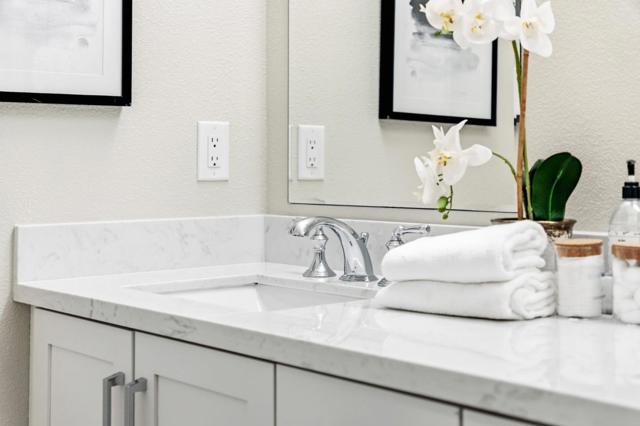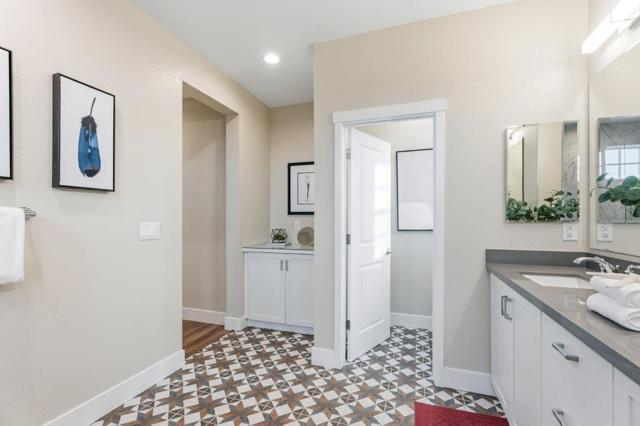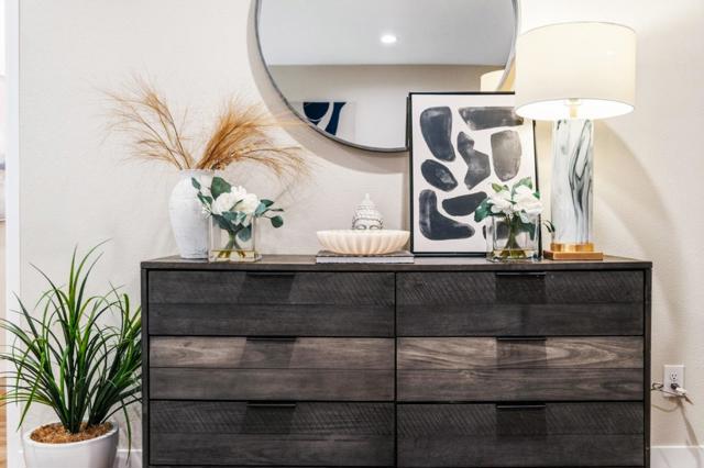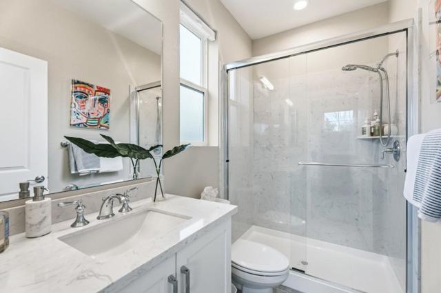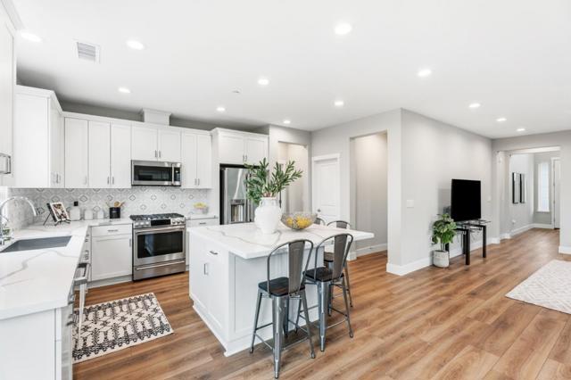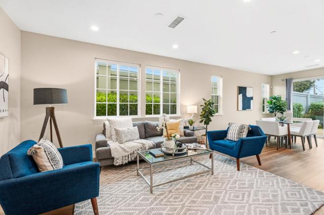 Built in 2022, situated on the largest lot within an intimate 9-home community, this modern home offers the ideal blend of newer construction, spacious outdoor living, & exceptional commuter convenience near Challenger School - Ardenwood, Dumbarton Bridge, & I-880 w/ easy access to Silicon Valley & the Peninsula. A grand double-height foyer creates an impressive entry & leads into a bright open-concept living, dining, and kitchen layout designed for comfortable everyday living and entertaining. Luxury vinyl plank flooring extends throughout most living areas and the staircase, adding warmth and durability. The chefs kitchen features a large island w/ bar seating, GE SST appliances, geometric tile backsplash, and a spacious walk-in pantry. A thoughtfully designed laundry room includes cabinetry, utility sink, and GE washer and dryer. The main level includes a bedroom and full bath w/ walk-in shower, ideal for guests or multigenerational living. Upstairs, the primary suite offers an oversized walk-in closet, dual-sink gray quartz vanity, and a marble-tile shower with built-in seating. Fully landscaped front and backyard, oversized driveway, EV-ready 2 car garage outlet, solar prewire, reverse osmosis drinking water system, and water softener complete this move-in-ready home.