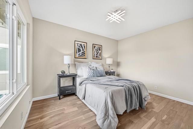 Welcome to a highly desirable townhouse in Harborside, one of Foster City's premier waterfront communities, ideally positioned on a wide-water location with tranquil lake views and an exceptional indoor-outdoor lifestyle. Offering 3 spacious bedrooms, 2.5 bathrooms, this thoughtfully designed residence blends comfort with sophistication. The light-filled living and dining room combination provides seamless access to the private back patio for enjoyment of Foster City's scenic waterways. The home showcases a newly updated kitchen designed to impress, featuring stainless steel appliances, quality two-tone cabinetry, elegant stone countertops, powerful hood etc. Beautiful engineered wood flooring flows throughout the entire home, complemented by refined new lighting fixtures that enhance the modern ambiance. All bathrooms were tastefully updated in recent years with high-quality finishes and craftsmanship, offering a truly move-in-ready experience. Two side by side car garage and interior laundry. Residents enjoy outstanding community amenities, vibrant neighborhood activities, and access to exceptional schools, creating an ideal environment for both comfortable living and elevated coastal elegance.