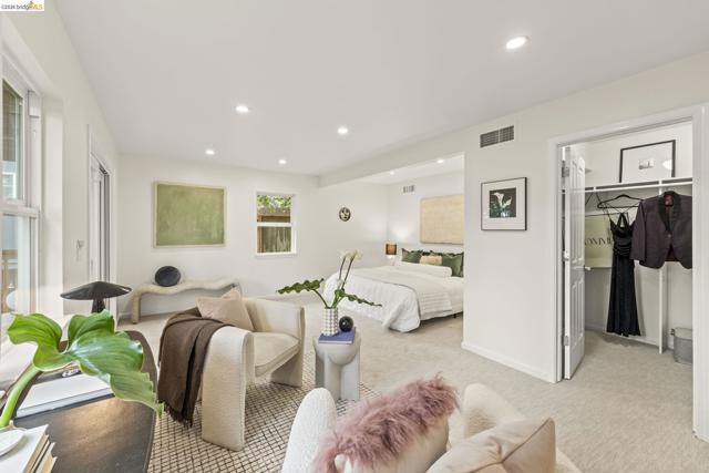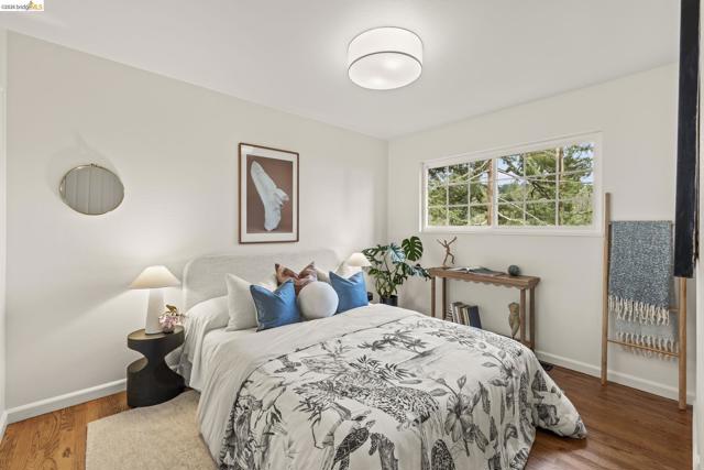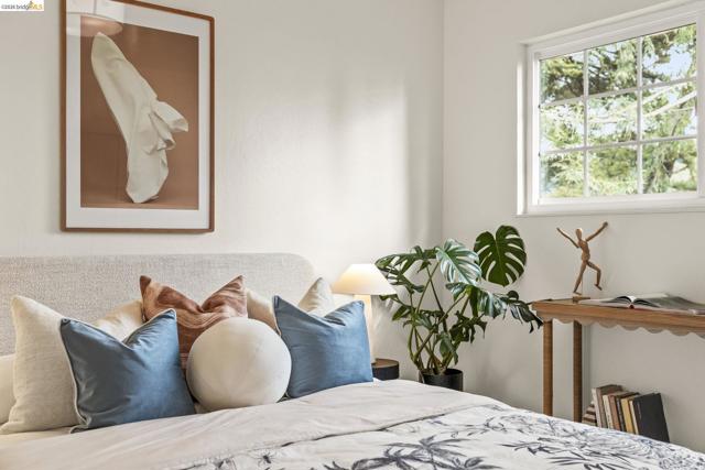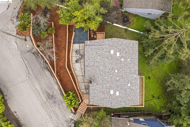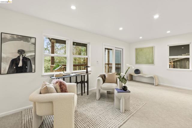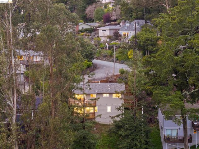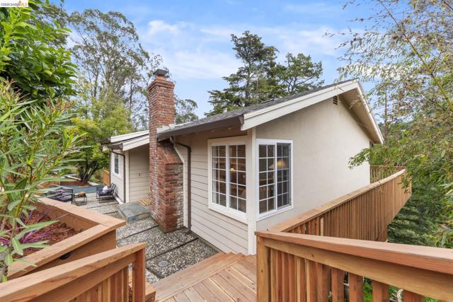 Tucked away on a quiet court in the coveted Montclair Hills of Oakland, this home offers the privacy, charm, and indoor-outdoor living you’ve been dreaming of. Surrounded by mature trees with no rear neighbors, this updated two-story home feels like a serene retreat, with nature framed from nearly every window. The thoughtfully designed open floor plan features hardwood floors, dual-pane windows, a cozy fireplace, and updated modern lighting that adds warmth and sophistication. The main level includes two bedrooms and one bathroom and flows seamlessly to a welcoming front patio and a spacious wraparound deck—ideal for entertaining, dining al fresco, or enjoying peaceful mornings among the trees. The layout offers flexibility and comfort. The primary suite occupies its own downstairs level, creating a true sanctuary complete with a private deck perfect for unwinding. Updated and move-in ready, this home also includes a Tesla electric vehicle charger. Quaint yet contemporary, private yet connected, this home delivers serene views, modern upgrades, and seamless indoor-outdoor flow in one beautifully tucked-away setting.