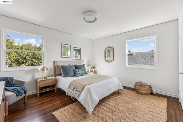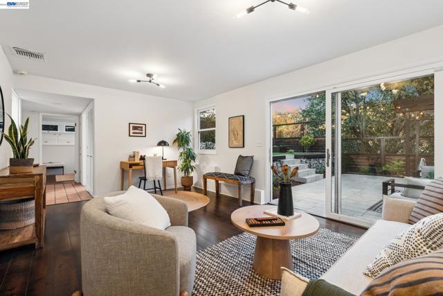 3386 Herrier blends mid-century architecture with modern, functional updates. The owners took incredible care of this home. Light-filled, open living and dining areas offer South Bay views. The eat-in kitchen is equipped with quartz countertops and a new range. Smart energy updates include a central heat pump for heating and air conditioning, upgraded electrical with solar, and a dedicated EV charging circuit. The property features an attached two-car garage with interior access and ample basement storage. The versatile lower level serves as a primary suite, a private guest wing, or family area, featuring a wet bar, wine fridge, and jetted tub. The family room flows to a beautifully and thoughtfully landscaped backyard. The yard offers the Oakland hills as a backdrop for entertaining and relaxing. Caged rock built-in benches separate a level of turf from a level with a patio and pergola, and garden beds line the yard. Come home to easy living at 3386 Herrier Street.