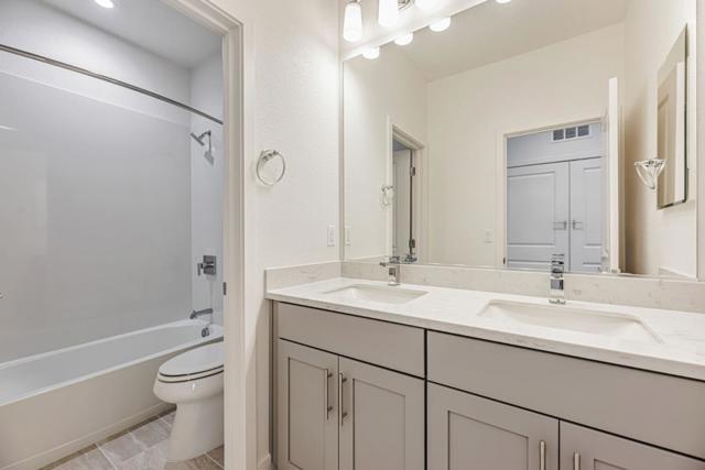 Featuring Towns Plan 3, this brand-new park-facing home offers 4 bedrooms, 3.5 baths, and a 2-car side-by-side garage. Thoughtfully designed with quartz kitchen countertops, Bosch appliances, and shaker-style, paint-grade soft-close cabinetry, this home blends modern style with everyday functionality. The first floor includes a private bedroom with en-suite bath, ideal for guests or a home office. On the second level, enjoy the expansive main living area featuring a spacious living and dining room, perfect for entertaining, along with a private deck for relaxing. The primary bedroom is highlighted by a generous walk-in closet. Energy efficiency is enhanced with solar panels, available for lease or purchase. City Village by SummerHill Homes is a thoughtfully planned community of 404 elegant residences, including a 2-acre public park with walking and biking trails, seating areas, and a community barbecue space. Ideally located near San Ramon's CityWalk neighborhood and within walking distance to City Center restaurants, movie theater, and shops, the community offers exceptional convenience. Additional nearby attractions include Central Park, Canyon Lakes Golf Course, and Bridges Golf Club, with easy access to schools, work, and transit. Photos are from another production home.