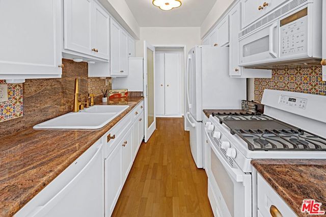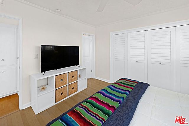 Light-filled, west-facing 2 bedroom, 2 bathroom end unit located in the heart of Santa Monica's highly sought-after Montana Avenue neighborhood. Unit #6 at 852 15th Street combines thoughtful upgrades, custom built-ins, and exceptional natural light, creating a private and inviting retreat with windows on three sides and only one shared wall. The sun-splashed interior features wood floors, crown molding, and a comfortable open living space with custom lighted built-ins. The updated kitchen offers granite countertops, dual sink, new cabinet doors, ample storage, a large walk-in pantry, and newer appliances including a French-door refrigerator and ultra-quiet dishwasher. The primary suite features custom-fitted closet and updated bathroom. The guest bedroom includes a fully built-in home office with shelving, file drawers, cubbies, and space for a guest bed. Bedrooms feature Pergo flooring. The updated bathrooms include marble countertops, a walk-in shower, and a skylight in the primary bath for year-round natural light. Additional improvements include in-unit washer and dryer, rewired electrical outlets, new interior doors, updated plumbing and fixtures, and an efficient split A/C system. Enjoy a private west-facing balcony with privacy screening and a resurfaced deck perfect for year-round sun and plant lovers. The home includes a private one-car garage and is ideally located on a quiet, non-through street just moments from Montana Avenue's cafes, restaurants, boutiques, grocery stores, transportation, and the beach is just a short distance away.