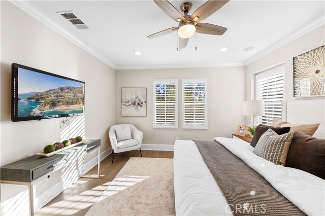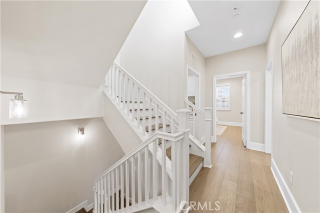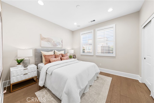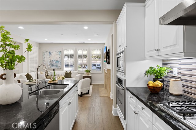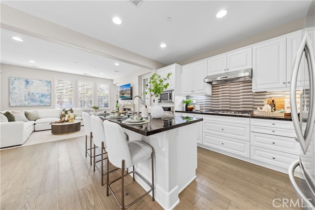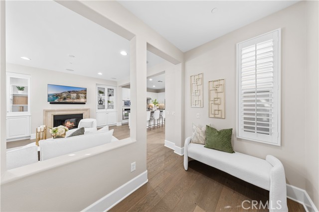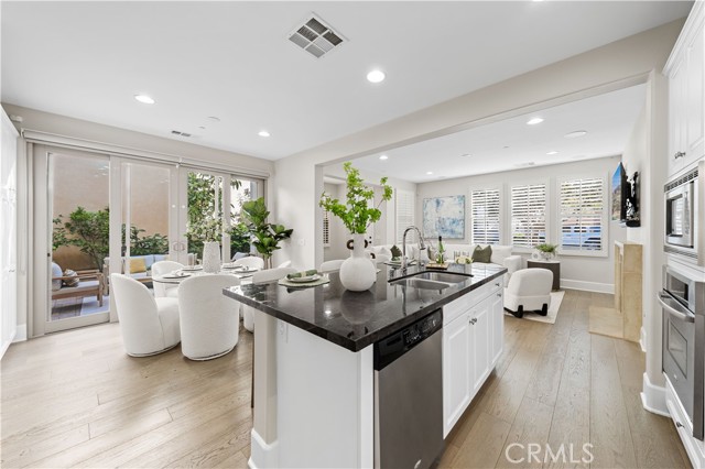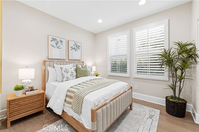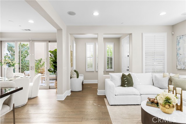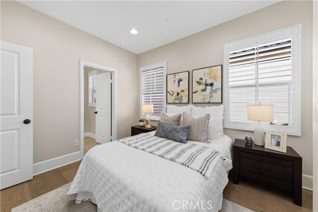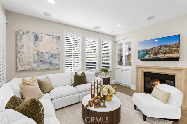 Perfectly positioned in the highly sought-after Portola Springs community of Irvine, this impeccably maintained detached contemporary home with a main-level bedroom offers the privacy of a standalone residence with exceptional convenience — just a 5-minute walk to Portola Elementary School, one minute to the neighborhood park across the street, and about five minutes to Silverado Park with tennis courts, a swimming pool, and expansive recreational space. A welcoming foyer opens into a bright living area anchored by a sleek fireplace, creating warmth and modern character. The kitchen features quartz countertops, stainless steel appliances, and a full wall of built-in cabinetry for excellent storage. Generous counter space and large glass doors facing the private side yard provide abundant natural light and seamless indoor-outdoor flow. The desirable main-floor bedroom is ideal for guests or multi-generational living. On the second floor, three bedrooms include a spacious primary suite with a custom walk-in closet and built-in organizers. The en-suite bath offers a separate soaking tub and walk-in shower with elegant small-format tile detailing. Secondary bedrooms are well-sized and share beautifully finished bathrooms with modern cabinetry, quartz surfaces, and cohesive tilework. The third-floor loft, complete with a built-in wine fridge, serves as a versatile space ideal for a lounge, media room, home office, or entertaining area — adding flexibility and lifestyle appeal to this thoughtfully designed detached residence. Residents enjoy access to Portola Springs’ resort-style pools, parks, sports courts, playgrounds, and scenic trails. Combining contemporary finishes, thoughtful upgrades, the privacy of a fully detached structure, and a prime location, this home represents an exceptional opportunity in one of Irvine’s most desirable communities.