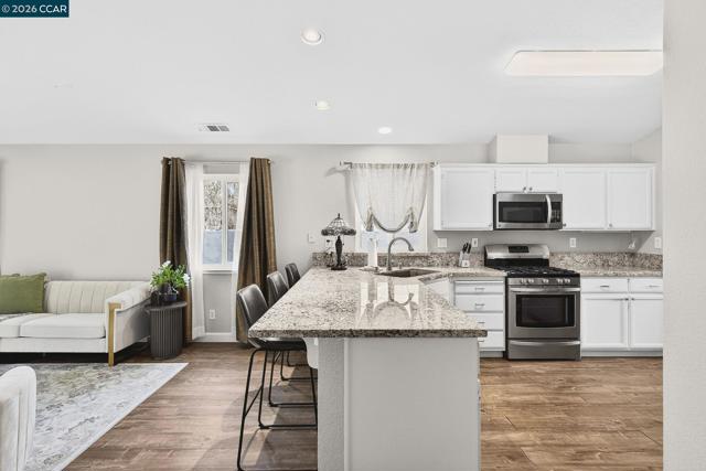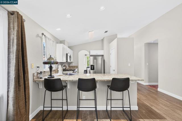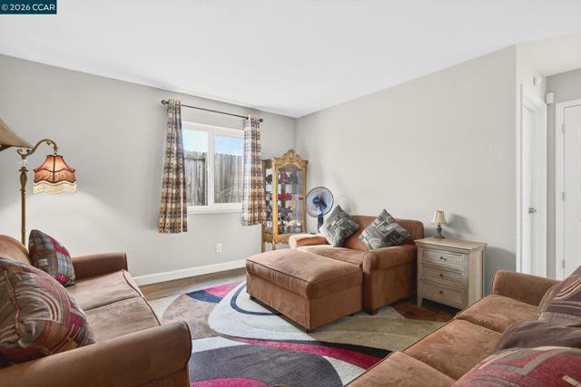 Located on a corner lot in a court, 5100 Sundance offers 1,588 sq ft of comfortable living space on a generous 5,800 sq ft lot. This 3-bedroom, 2-bath single-family residence provides a functional floor plan and a convenient Antioch location. Step inside to a welcoming floor plan where the dining room flows seamlessly into the updated kitchen, showcasing beautiful countertops, a pantry, and an open connection to the living room. A cozy fireplace anchors the living space, while direct access to the backyard and patio creates an easy indoor-outdoor lifestyle—ideal for entertaining or relaxing at home. The spacious primary bedroom features its own ensuite bathroom for added privacy and comfort. A versatile bonus room offers flexibility for a home office, gym, media room, or play space. Dual-pane windows, central air conditioning, and a dedicated laundry room enhance everyday convenience and year-round comfort. Conveniently located close to parks, schools, shopping, and restaurants—this is one you won’t want to miss.