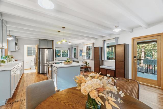 This turnkey 3-bedroom, 2-bath home radiates warmth and character throughout. Oversized windows and a glass-paneled front door flood the interior with natural light, while the welcoming front porch offers the perfect spot to relax and take in the neighborhood. Inside, the open-concept main floor creates an effortless flow between living and entertaining spaces. The updated kitchen features stainless steel appliances, a generously sized sink, and a large island with seating for threeperfect for casual meals or keeping the chef company during dinner prep. Upstairs, you'll find thoughtful privacy with all three bedrooms and the full bathroom tucked away on the second floor, providing great separation of space from the main living areas. The lush backyard features a meandering stone pathway winding through the garden to a terraced seating area, while a brick patio creates an ideal setting for summer grilling and outdoor dining. Easy access to major commuter routes, locally owned restaurants, grocery stores, and beautiful hiking and mountain biking trails.