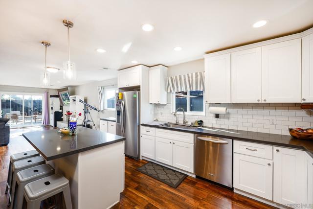 Light-Filled Living in a Prime San Diego Location! Welcome to this beautifully updated single-level home in a highly desirable neighborhood. Set on a 5,300 sq ft lot, this residence offers a bright, spacious open floor plan designed for comfortable everyday living and effortless entertaining. The main living area flows seamlessly into the dining space and kitchen, creating an inviting central hub with excellent functionality. The kitchen features updated cabinetry, subway tile backsplash, stainless steel appliances, and timeless finishes that feel both fresh and enduring. The thoughtfully designed split floor plan provides ideal privacy. Three secondary bedrooms sit on one wing, while the generously sized primary suite is set apart for added separation. The primary retreat includes a spacious bedroom and oversized bathroom with a large shower and ADA accessibility. Approximately 30 paid-off, grandfathered solar panels offer strong production — delivering long-term energy efficiency and meaningful cost savings. The fully fenced backyard features pavers and open space, ideal for pets, play, and family gatherings, with flexibility to enjoy as-is or personalize over time. Move-in ready and thoughtfully updated, this home blends smart efficiency, functional design, and everyday comfort — and is priced competitively for a quick sale.