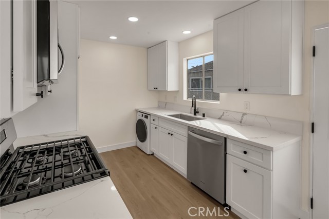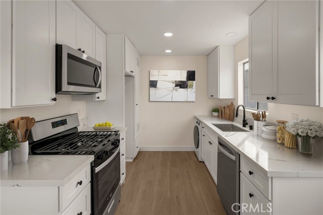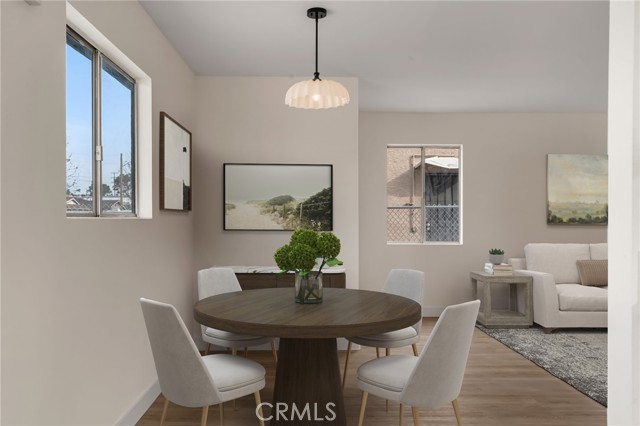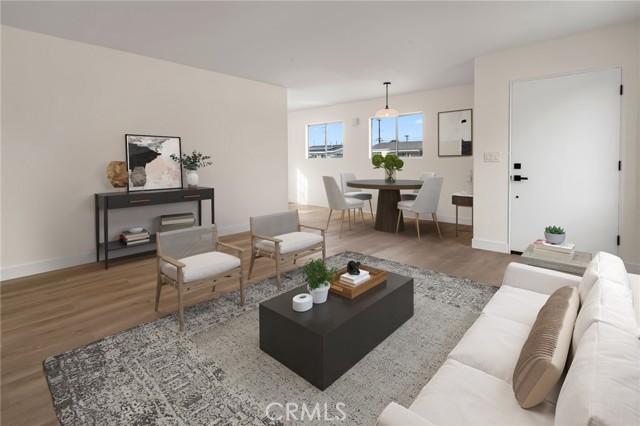 Welcome to the city of Artesia! Situated within the highly desirable ABC Unified School District, this nicely updated 2-bedroom home offers a functional layout and thoughtful updates throughout. A welcoming front lawn and walkway that lead up to the home's main entry. The home opens into a connected living and dining area, creating a comfortable and perfect layout for hosting. New flooring and fresh interior paint continue throughout the space, providing a bright and refreshed feel. The dining area flows seamlessly into the updated kitchen, which features recessed lighting, stainless steel appliances, and an integrated washer and dryer. A side door off the kitchen provides direct access to the driveway, which extends to a detached two-car garage at the rear of the property. The home offers two well-sized bedrooms and a bathroom conveniently located off the living area. A backyard with a generous lawn provides additional outdoor space for relaxation or entertaining. Take a look at it today before it's too late! To help visualize this home’s floor plan and to highlight its potential, virtual furnishings may have been added to photos found in this listing.