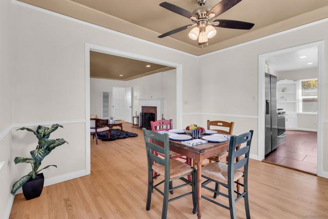 A charming single-story home located on a quiet residential street in the heart of Talmadge. This home blends classic character with thoughtful updates and comfortable living spaces. The inviting living room features hardwood flooring, a brick fireplace, recessed lighting, and a tray ceiling detail that adds warmth and architectural interest. Large windows bring in abundant natural light, creating a bright and welcoming atmosphere throughout. The galley-style kitchen is appointed with granite countertops, stainless steel appliances, white cabinetry, and ample storage, flowing seamlessly into the dining area—ideal for everyday living and entertaining. Both bathrooms are well maintained, and the functional layout offers flexibility for families, guests, or a home office setup. Step outside to a spacious backyard with a patio area and grassy yard, providing plenty of room for outdoor dining, gardening, or future customization. The property also includes a detached garage, extended driveway for additional parking, and mature landscaping that enhances curb appeal. Conveniently located near SDSU, parks, shopping, dining, and major freeways, this home presents an excellent opportunity for owner-occupants or investors seeking strong rental demand in a central San Diego location.