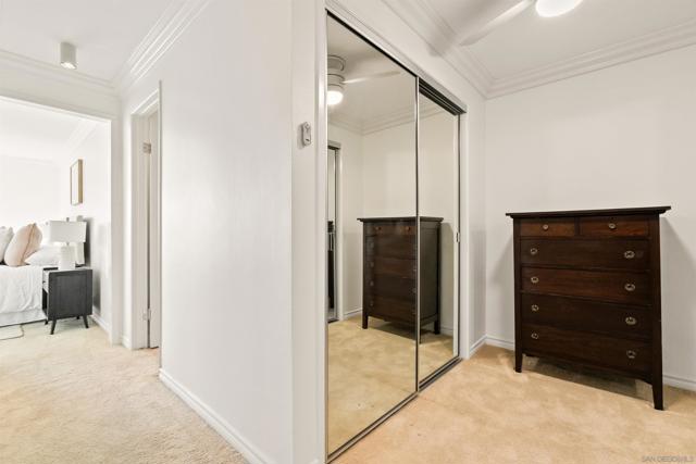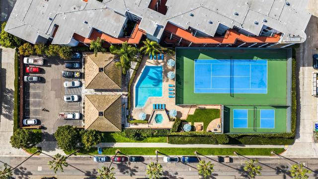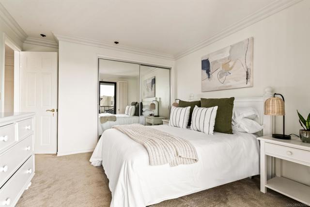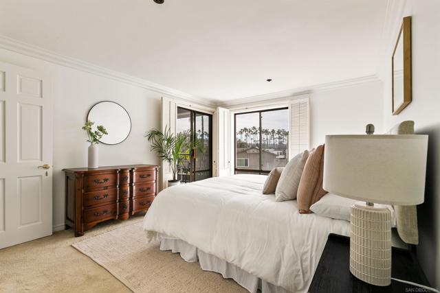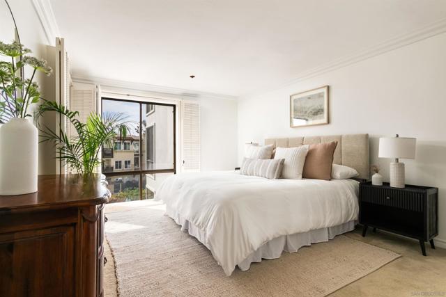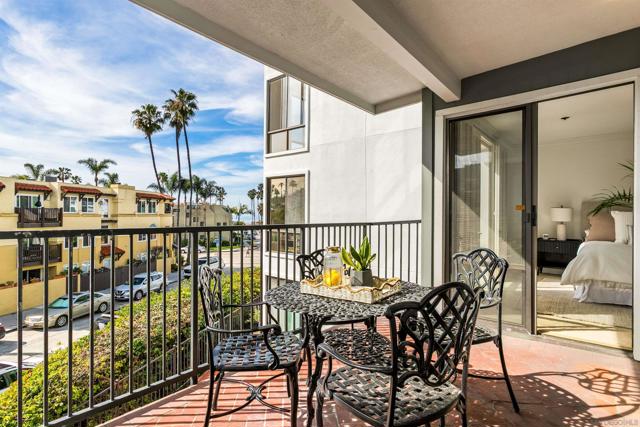 Light and bright second-floor residence with ocean views in the highly desirable and amenity-rich Clubdominiums of La Jolla Shores. This beautifully appointed unit features floor-to-ceiling windows in the living room and both bedrooms, filling the space with abundant natural light. Enjoy lovely ocean views from the living area and the ocean-facing patio. The home offers a spacious in-unit laundry room with a full-sized, side-by-side washer and dryer, along with additional storage. The primary suite includes an en-suite bathroom and dressing area. A secondary bedroom and full hall bath provide comfortable accommodations for guests or a home office. The upgraded kitchen showcases tasteful finishes and mostly new appliances. The building offers secure entry, elevator access, trash chute and gated parking. Ideally located just steps from the beach, dining, Kellogg Park and La Jolla Beach & Tennis Club. Community amenities include clubhouse, fitness room, pool and spa, tennis and pickleball courts.