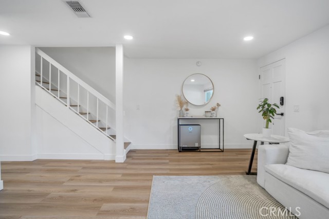 Welcome to this updated two-story townhouse located in the desirable Lake Balboa community. This property offers a private patio and an attached two-car garage with direct access. The first floor features brand new flooring throughout, an open living room, dining area, and a guest bathroom. The kitchen has been upgraded with quartz countertops, subway tile backsplash, and sleek appliances. Upstairs includes two bedrooms, each with its own bathroom and vaulted ceilings. The primary bathroom features a modern vanity, upgraded fixtures, and tile flooring. The gated community offers amenities including a pool, spa, and landscaped common areas. Conveniently located near dining, grocery stores, major freeways, and Ventura Blvd shops and cafes.