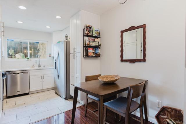 Rarely available, parklike, SINGLE-LEVEL condo just steps from the Santee's top-rated Woodglen Vista Park & Dog Park. Enjoy your own private garage plus an additional assigned parking space. Full-sized washer & dryer in the unit. Tucked in the back, this property feels like a detached home with no one above and a large fully fenced private front yard. Recent kitchen remodel maximizes extra cabinet storage and give the entire space an modern feel. Owners can access 2 community sparkling pools and playground areas. FHA & VA welcome. Walk to Woodglen Vista Park w/ Dog Park, Baseball Fields, Tennis, Basketball Court, Playground, Skate Park, BBQ & Picnic areas. Walk to Canyon Park Elementary School K-8. Close to 52, 67 & 125 Freeways. 3 miles to Santee Town Center. 3.5 Miles to Santee Lakes. Don't miss this opportunity. This Home has it ALL! Don't Miss it!