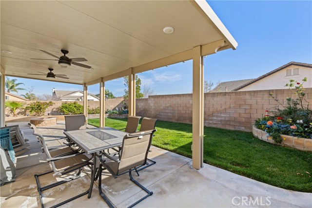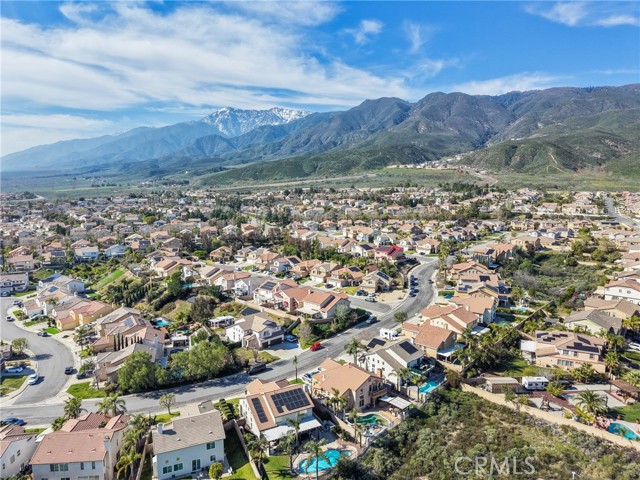Welcome to this beautiful corner-lot home located in the highly desirable Hunters Ridge community, nestled on a quiet cul-de-sac street. Offering 4 bedrooms and 3 bathrooms, this spacious residence blends comfort, functionality, and breathtaking views. The kitchen features ample cabinet space, a center island, and opens seamlessly to the inviting family room with a cozy fireplace and additional dining area perfect for everyday living and entertaining. A separate living room with high ceilings flows into the formal dining room, creating an elegant space for gatherings. Upstairs, the spacious primary suite includes an attached bonus room currently used as a private office ideal for remote work, a nursery, or retreat space. The primary bathroom offers a dual-sink vanity, soaking tub, and separate shower. The additional bedrooms are generously sized, providing flexibility for family or guests. Additional highlights include an indoor laundry area and recessed lighting throughout the home. Step outside to a beautifully designed backyard featuring a covered patio with recessed lighting, ceiling fans, and a cozy fire pit perfect for relaxing evenings or entertaining. The attached three-car garage provides ample storage, and you’ll enjoy stunning mountain views right from the garage. Located within the highly sought-after Etiwanda School District and close to parks, shopping, and commuter access, this home truly offers the best of Hunters Ridge living.