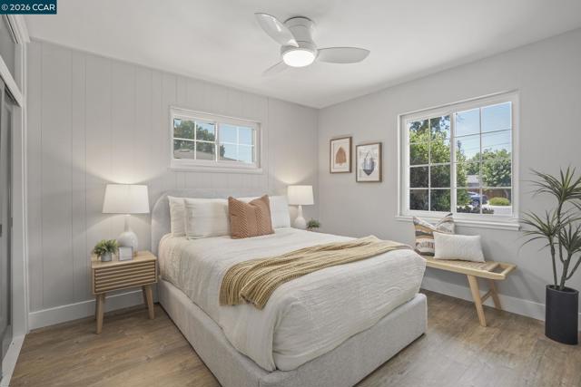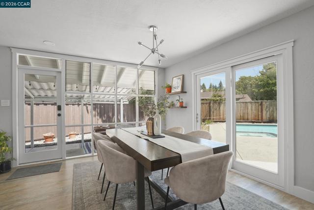 *Open House Saturday 2/28*Updated single-story home on quiet Pleasant Hill court. 3 bedrooms, 2 bathrooms, approx. 1,188 sq ft on 8,800 sq ft lot. Open floor plan with updated flooring, recessed lighting, and remodeled kitchen featuring shaker cabinets, quartz countertops, stainless steel appliances, and chevron tile backsplash. Primary bedroom with en-suite bath. Backyard includes pool, spa, covered patio, and ample yard space. Large lot offers potential for ADU (buyer to verify). Detached garage. Convenient location near shopping, dining, parks, and schools.
