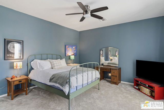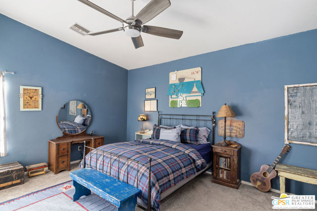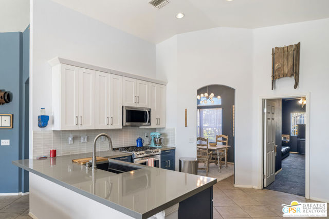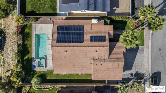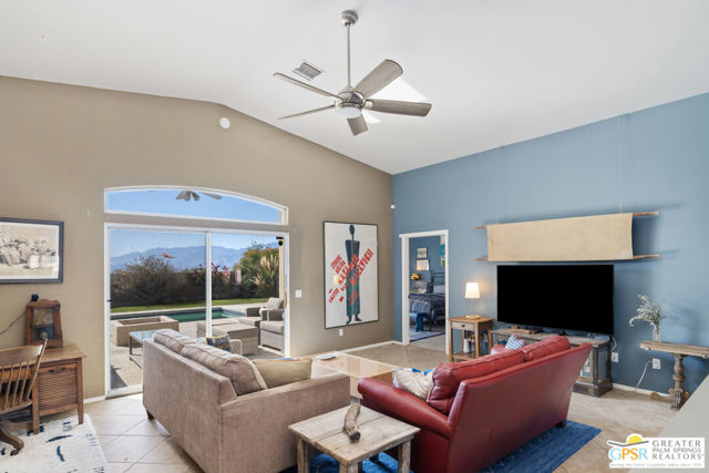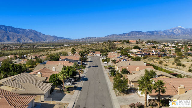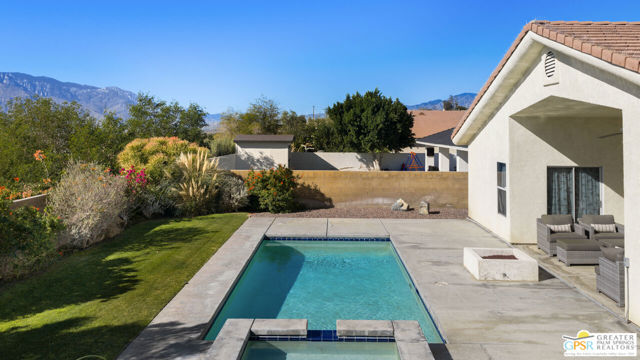 Welcome to your private desert oasis! This fantastic single-family home is a true gem nestled on a quiet cul-de-sac in the desirable Heights of Desert Hot Springs. Featuring four bedrooms, two baths, and a host of upgrades, this property provides the perfect blend of modern comfort and mountain tranquility. Once inside you will be awed by the vaulted ceilings and an open-concept design that flows seamlessly from the living area to the kitchen. The living room features a cozy gas fireplace and a spacious dining area, perfect for hosting. The heart of the home is theupdated chef-inspired kitchen, boasting stainless steel appliances and custom slow-close cabinetry. Designed for privacy, the en-suite primary bedroom serves as a secluded retreat with direct access to the pool. A large family entertainment area serves as the home's centerpiece, offering stunning desert and mountain views from every angle. Your outdoor sanctuary awaits. Relax in the private pool and spa, or gather around the poolside fire pit for memorable evenings under the stars along with breathtaking panoramic mountain views that offer a constant sense of serenity. Eco-Friendly and Fully equipped with owned solar panels for maximum energy efficiency and lower utility bills. Attached two-car garage and located on Fee Simple land (no lease). An ideal full-time residence, second home or vacation rental income