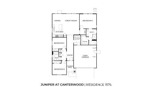 This 1,576 square foot single-story California Traditional home with 3 bedrooms and 2 full bathrooms also has a nice large deep yard. The island kitchen QUARTZ counters, built-in stainless-steel appliances and a pantry closet. The interior comes complete with white shaker-style cabinetry throughout, lots of included recessed lighting, and vinyl flooring in main living areas with plush carpet in bedrooms, closets, and stairwell. The primary bedroom has an ensuite bathroom with double sinks and a walk-in closet, and there are 2 additional bedrooms, a full bathroom, and laundry room. There is also a direct-access 2-car garage PRE-PLUMBED for an electric car! This truly modern home has all the Smart Home features you would expect and is landscaped and irrigated in the front yard. The Juniper community is situated close to park and freeway access. We anticipate a June 2026 move in.