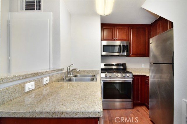 **FHA & VA APPROVED** Resort style living in the heart of Warner Center, welcome to The Met! This CORNER UNIT 1 BEDROOM + LOFT is situated in the perfect location on the TOP FLOOR w/only 1 shared wall. This unit is also walking distance to the main pool, gym & tennis courts, while remaining tucked away from the disturbances of main streets and 101 freeway noise. This lovely upgraded 1 Bed + LOFT / 1 Bath unit features a plethora of amenities, including recent paint and carpet upgrades, recessed lighting, plantation shutters as well as updated STAINLESS appliances. Certainly the most desirable floor plan, this style utilizes an open concept with soaring ceilings and clerestory windows that drench the main living spaces in natural light. The kitchen is equipped with custom cabinets, GRANITE COUNTERS & updated stainless appliances, while the spacious living/dining room features VAULTED CEILINGS and a dazzling gas fireplace. Make your way to the master suite to be pleasantly surprised by the amount of space, as well as having two separate closets and an en-suite bath. In addition, you have a private open air LOFT, ideal for any home office, gym or guest bedroom. Add to all this a relaxing balcony to enjoy the amazing weather So Cal affords us year round and you've found yourself a winner. Conveniently located nearby the elevator for easy access down to the laundry room & parking garage, which provides two covered tandem parking spaces. The Met is a guard gated community that sits on 26 acres of meticulously landscaped grounds featuring 4 resort-style swimming pools, six night lighted tennis courts, full fitness center, racquetball and indoor basketball courts and multiple spas. All this located within walking distance to The Village and all the dining, shopping & entertainment Warner Center has to offer, including the Los Angeles Rams' new training facility.