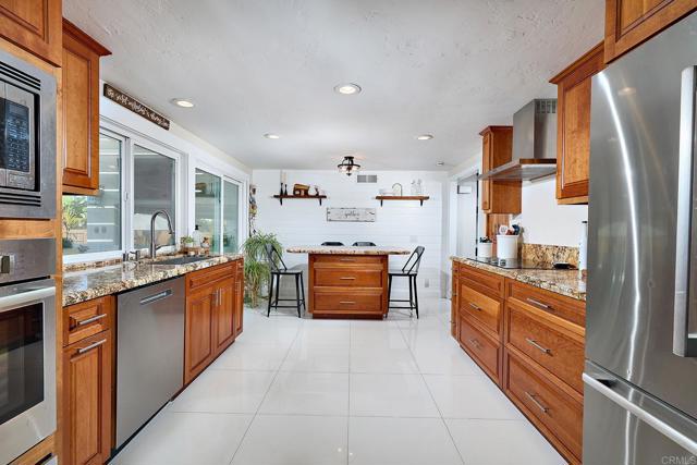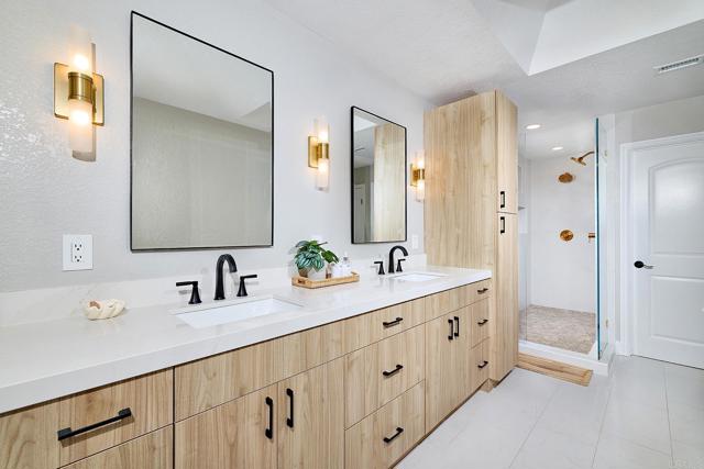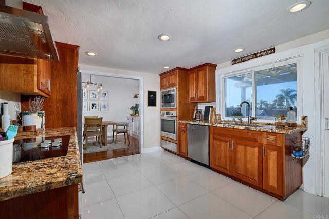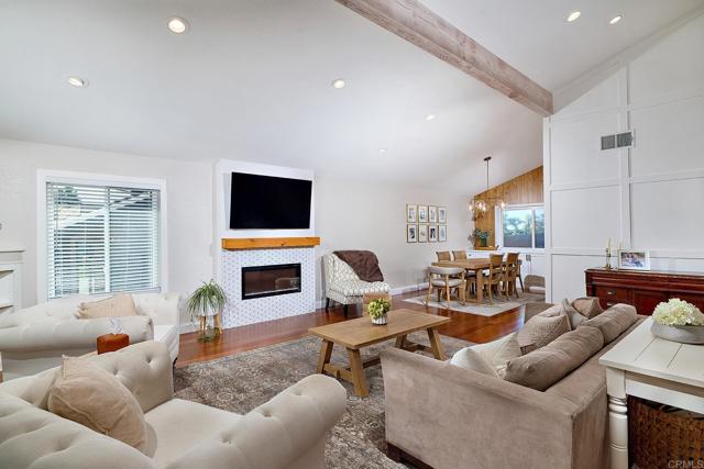 This is such a unique property with Next Gen living! Located in the highly desirable La Costa neighborhood of Carlsbad, this beautifully updated 4-bedroom, 3-bath home offers space, flexibility, and privacy on a large view lot. As you enter the home, you’re welcomed by a stunning great room with soaring vaulted ceilings, a custom fireplace, and a light-filled open floor plan that creates an immediate sense of warmth and spaciousness. The spacious kitchen features a premium Bosch refrigerator, overlooks the sparkling pool, and opens directly onto a large deck — perfect for indoor-outdoor living and effortless entertaining. The kitchen flows seamlessly into the inviting family room with built-in features that add charm and functionality. The remodeled dining room is a true showpiece, complete with custom-built-in cabinetry, a striking feature wall, and a wine fridge — ideal for hosting gatherings in style. Designed with multi-generational living in mind, the downstairs next-generation suite has been completely remodeled and offers a private, self-contained retreat. This exceptional space features its own living area, fireplace, full bath, mud room, kitchenette, and washer and dryer, along with its own private outdoor space — creating ideal accommodations for in-laws, guests, or extended stays while maintaining privacy and independence. All bathrooms have been tastefully updated, including a completely remodeled primary suite bathroom designed with modern finishes and thoughtful detail. Custom lighting throughout enhances the elevated design aesthetic. Additional highlights include a large attic storage space and a 2-car garage. Step outside to your private backyard retreat featuring a pool, expansive lot, and sweeping neighborhood views — ideal for relaxing or entertaining. A rare opportunity in La Costa, offering versatility, thoughtful upgrades, and exceptional potential for multi-generational living. No HOA or Mello Roos!