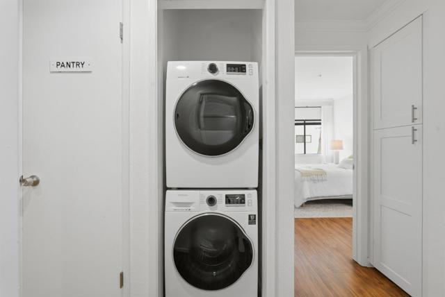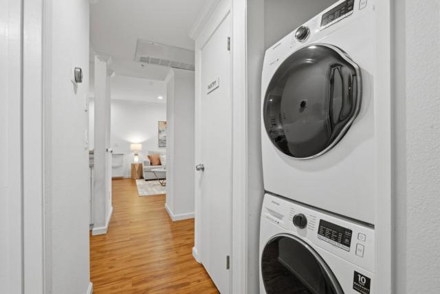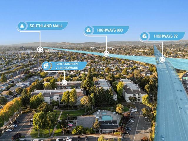 Incredible opportunity to own a 2 bed, 2 bath home in a delightful community nestled among rustic trees in a family-friendly neighborhood. This bright, airy, open floor plan features central heat and indoor laundry, with abundant storage and Hardwood flooring throughout. The remodeled kitchen boasts quartz countertops, a stylish backsplash, a generous breakfast bar, custom cabinets, and stainless-steel appliances. The master suite includes a dual vanity, ample closet space, and window for natural light. The guest room has slider access to the balcony with an attached storage unitperfect for enjoying coffee or unwinding in the evening. The community offers a fenced-in pool area with a pool house, a private oasis for relaxation and recreation. A picnic area and community room provide ideal spaces for indoor/outdoor gatherings. Additional perks include 2 assigned parking spots1 in a gated garage and 1 directly outside the front entranceplus convenient proximity to the elevator and stairs. HOA fees cover trash, water, roof, and exterior maintenance, with easy access to HWY 92/880 for your commuting needs. Close to cafes, shops, dining, Chabot College, and San Mateo Bridge. Don't miss out on this prime location!