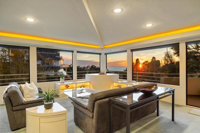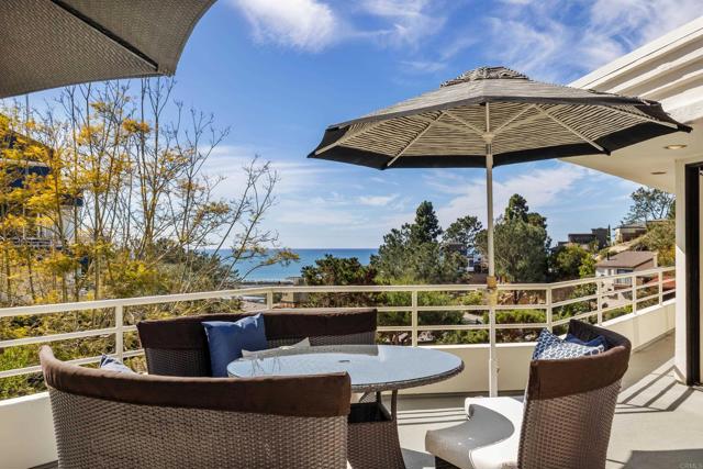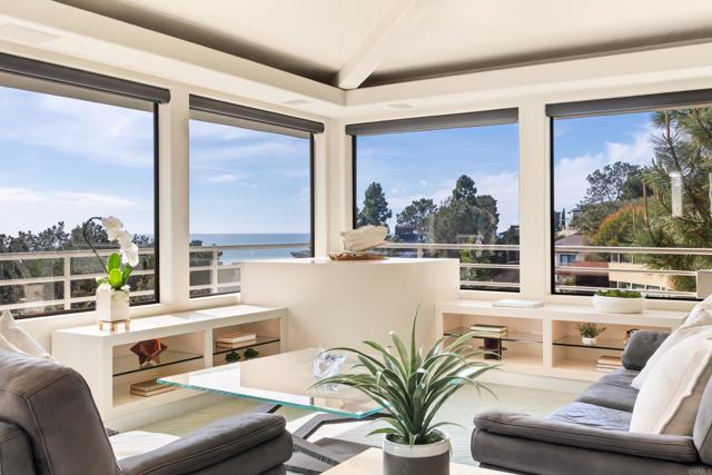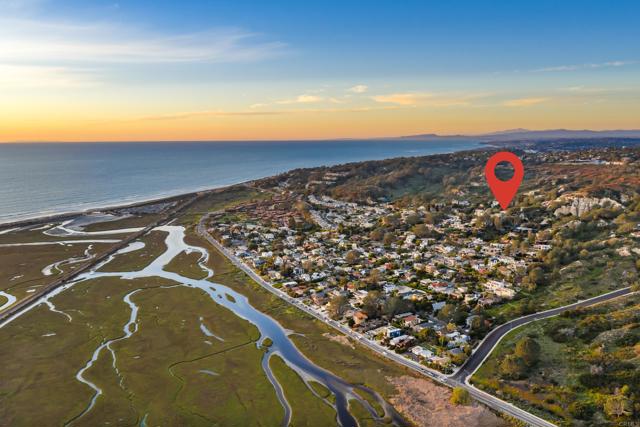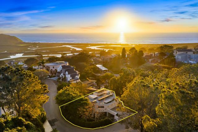 Perched atop Del Mar Terrace, this stunning coastal retreat captures panoramic whitewater ocean and Los Penasquitos Lagoon views! Situated on a larger lot, the home offers 3 bedrooms + Office, 2.5 baths, and an OWNED 7.4 kW house solar system. Unfinished 700 sqft basement with separate entrance and ADU potential. Gourmet kitchen with granite counters and high-end Sub-Zero & Miele appliances. Open living spaces feature surround sound, LED soffit lighting, and remote window shades. Main-level view deck with firepit and gas grill connection. Luxurious garden deck with spa, Asian-inspired landscaping, rose garden, fruit trees, and charming pergola. Extra-large 2-car garage with workshop. Del Mar address within City of San Diego—close to Torrey Pines Beach, golf, fine dining and shopping options nearby.