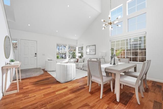 Welcome to this stunning single-family home offering 4 bedrooms and 2.5 baths in the sought-after Berryessa area, with a northeast-facing front door. The home greets you with a living room featuring soaring vaulted ceilings and large windows, flowing into a connected dining area with a stylish pendant light. A convenient half bath nearby adds ease. The kitchen-family room combo is located at the back, where the family room offers a cozy fireplace and large windows. The gourmet kitchen showcases quartz countertops, a beautiful backsplash, stainless steel appliances, and ample cabinetry, with a sliding door to the backyard for seamless indoor-outdoor living. Upstairs, the primary suite features a spacious bedroom with double doors, a vaulted ceiling, and a beautiful arched window. The modern en-suite bath includes a double vanity, stall shower, and a walk-in closet. Three additional bedrooms and a hallway bath with shower over tub complete the second level. Recessed lights throughout. Attached two-car garage. Enjoy nearby grocery and shopping at Costco, H Mart, 99 Ranch, and Great Mall, with easy access to Highways 680, 880, and 101, near BART Station, and a short commute to tech companies. Do not miss this great opportunity!