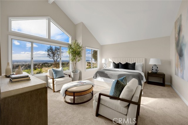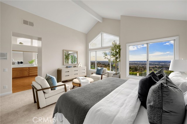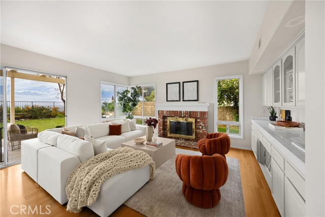 Perched within the highly sought-after hillside enclave of Belmont Estates, this six-bedroom residence captures sweeping panoramic views across Orange County, with Catalina Island visible on clear days. Held by its original family for nearly four decades, this home reflects years of care and now presents a rare opportunity to reimagine a spacious property in one of Orange’s most coveted communities. Spanning approximately 3,700 square feet, the thoughtfully designed floor plan features soaring ceilings in the living and dining rooms, where abundant natural light enhances the sense of openness and frames the expansive vistas beyond. The open-concept kitchen flows seamlessly into the family room, complete with a fireplace, built-in bar and direct access to outdoor living areas — creating an effortless setting for everyday living and sunset gatherings. A downstairs bedroom and full bath provide flexibility for guests or multigenerational living, while additional upstairs bedrooms offer generous space for home offices, creative retreats, or growing households. Recent updates, including fresh interior paint, new carpet, and select window replacements, provide a solid foundation for personalization while preserving the home’s original character. Set along a single-loaded stretch of Meredith Street — with no homes directly across — the approximately 24,800 square foot lot enjoys added privacy, open sightlines, and a peaceful sense of arrival. A rare four-car garage further enhances the property’s functionality and long-term appeal. Belmont Estates is known for its quiet hillside setting, established community atmosphere, and convenient proximity to Old Town Orange, dining, shopping, and major freeways. Homes of this scale and view orientation are seldom available — offering a distinctive opportunity to begin the next chapter in one of Orange’s most desirable neighborhoods.