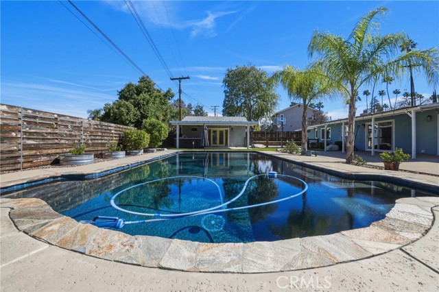 Be captivated as you step inside 1582 Franklin Avenue, an updated modern farmhouse tucked away in desirable South Redlands. With an oversized bright yellow Dutch door welcoming you home, this single story pool residence blends storybook character with refined luxury. Offering 2,310 square feet of thoughtfully designed living space, this four bedroom, with a space for a 5th bedroom, three full bathroom home sits on a 13,340 square foot lot. The curb appeal is undeniable, framed by drought tolerant landscaping and mature greenery setting the tone for what awaits inside. Step through the cheerful Dutch door into a light filled open floor plan designed for effortless living and entertaining. Large insulated dual pane windows with custom shutters invite abundant natural light, creating a vibrant atmosphere filled with Redlands charm and character. The spacious dining room is ideal for gatherings, while the cozy fireplace in the living room adds warmth and ambiance for relaxing evenings at home. The open kitchen is the heart of the home, featuring a large center island with an eating counter bar, perfect for casual mornings or lively dinner parties. Newer appliances complement the modern farmhouse aesthetic with beauty and function, and the entertainer’s layout flows seamlessly to the backyard retreat. Designed with versatility in mind, the home offers dual primary bedrooms, an indoor shower and bathroom for pool guests with an exterior door, a large ADU space / private room / office space with a walk in closet, attached to the garage ideal for multigenerational living or guests. All bathrooms have been completely updated and are in pristine condition with thoughtful attention to detail, and newer flooring enhances the turnkey appeal. A dedicated laundry room with a farm sink, ample storage, and built in shelving adds convenience and character. Step outside to your private backyard sanctuary and enjoy the extra large sparkling salt water pebbletec swimming pool, two large covered patios, an outdoor BBQ kitchen, and a large inviting fire pit, perfect for year round entertaining. The detached two car garage provides generous space for vehicles, storage, or hobbies. Located minutes from historic downtown Redlands, Prospect Park, and the Redlands Bowl. South Redlands remains one of the city’s most coveted neighborhoods, and this turnkey modern farmhouse is more than a home, it is a lifestyle.